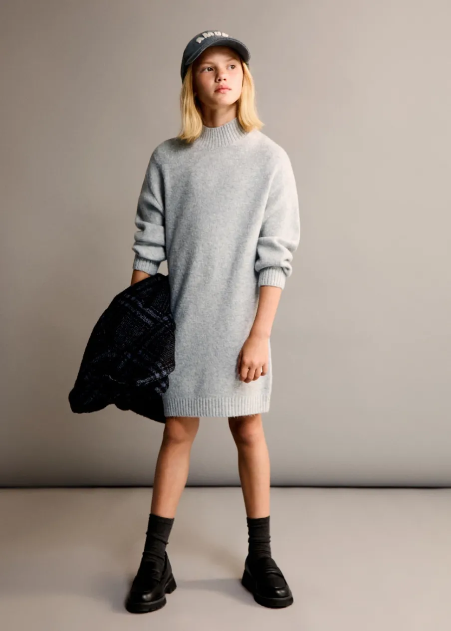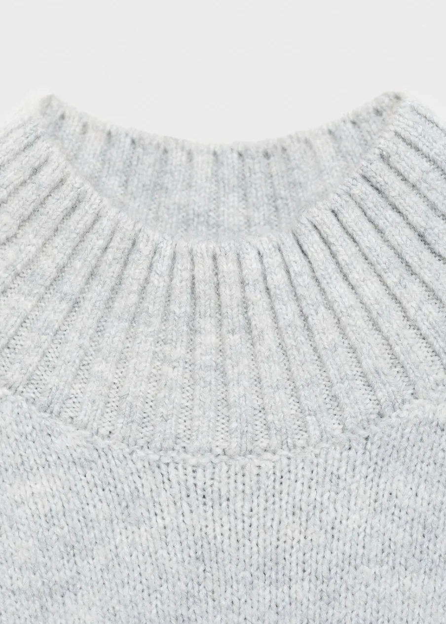 Dzianinowa tkanina. Model prosty. Krótki krój. Półgolf. Długi rękaw.