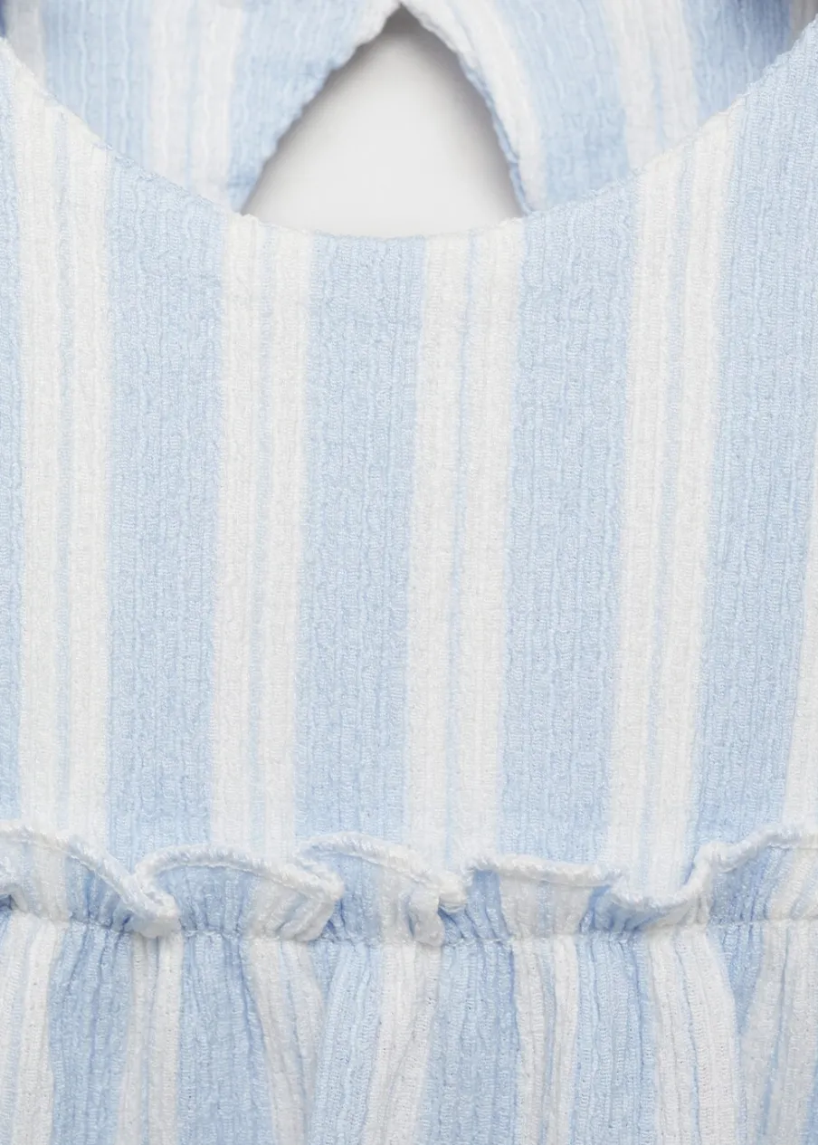 OpisKrótki krój. Bez rękawów. Okrągły dekolt z zapięciem na guzik. Fason z odkrytymi plecami. Nadruk: paski. Mars…