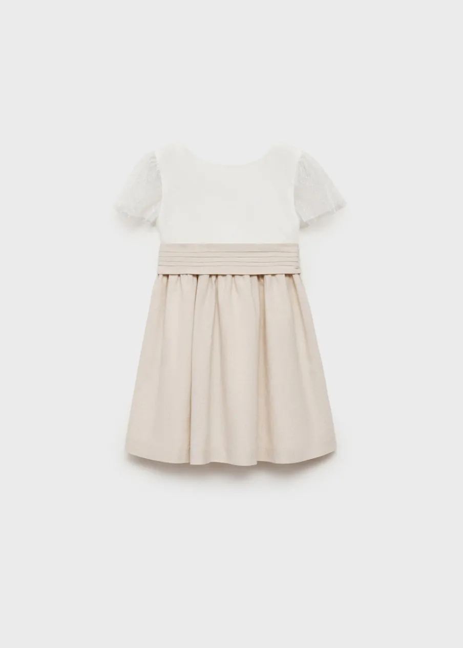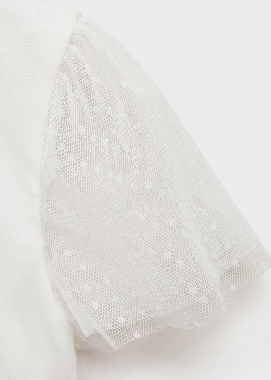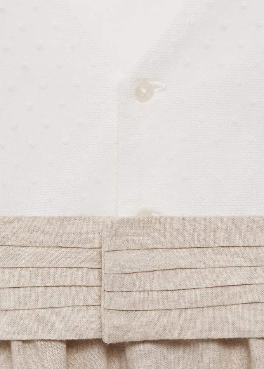 OpisKrótki krój. Drapowana talia. Struktura w groszki. Marszczona talia. Dekolt w kształcie łódki. Krótki rękaw. …