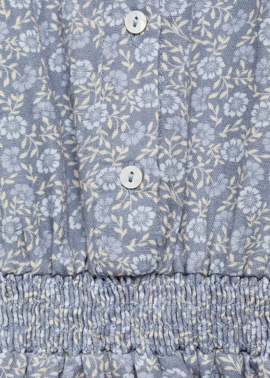 Kolekcja Powrót do szkoły. Bawełna 100%. Model prosty. Kwiatowy wzór. Okrągły dekolt. Długi bufiasty rękaw. Marszczona talia. Krótki krój. Falbana u dołu. Zapięcie na guziki.