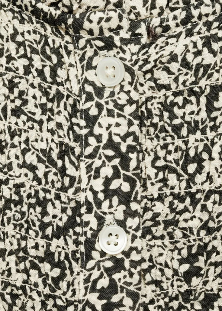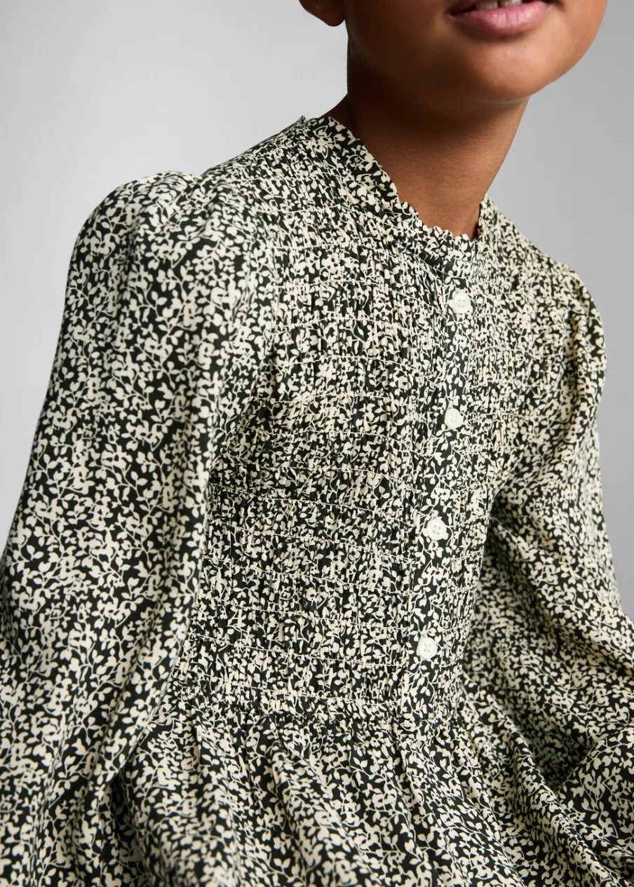 OpisKrótki krój. Okrągły dekolt. Długi rękaw z elastycznymi mankietami. Ozdobne guziki. Nadruk.