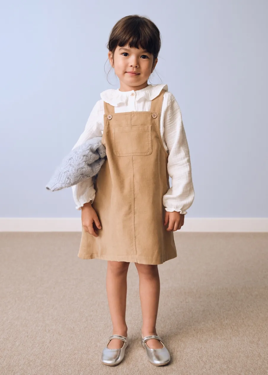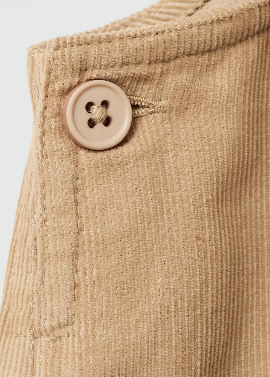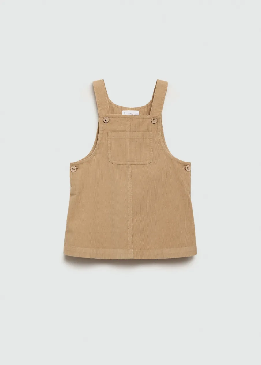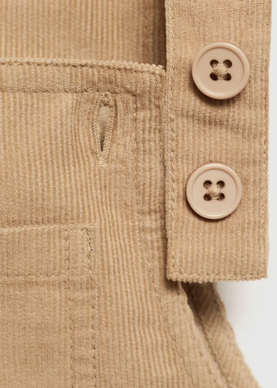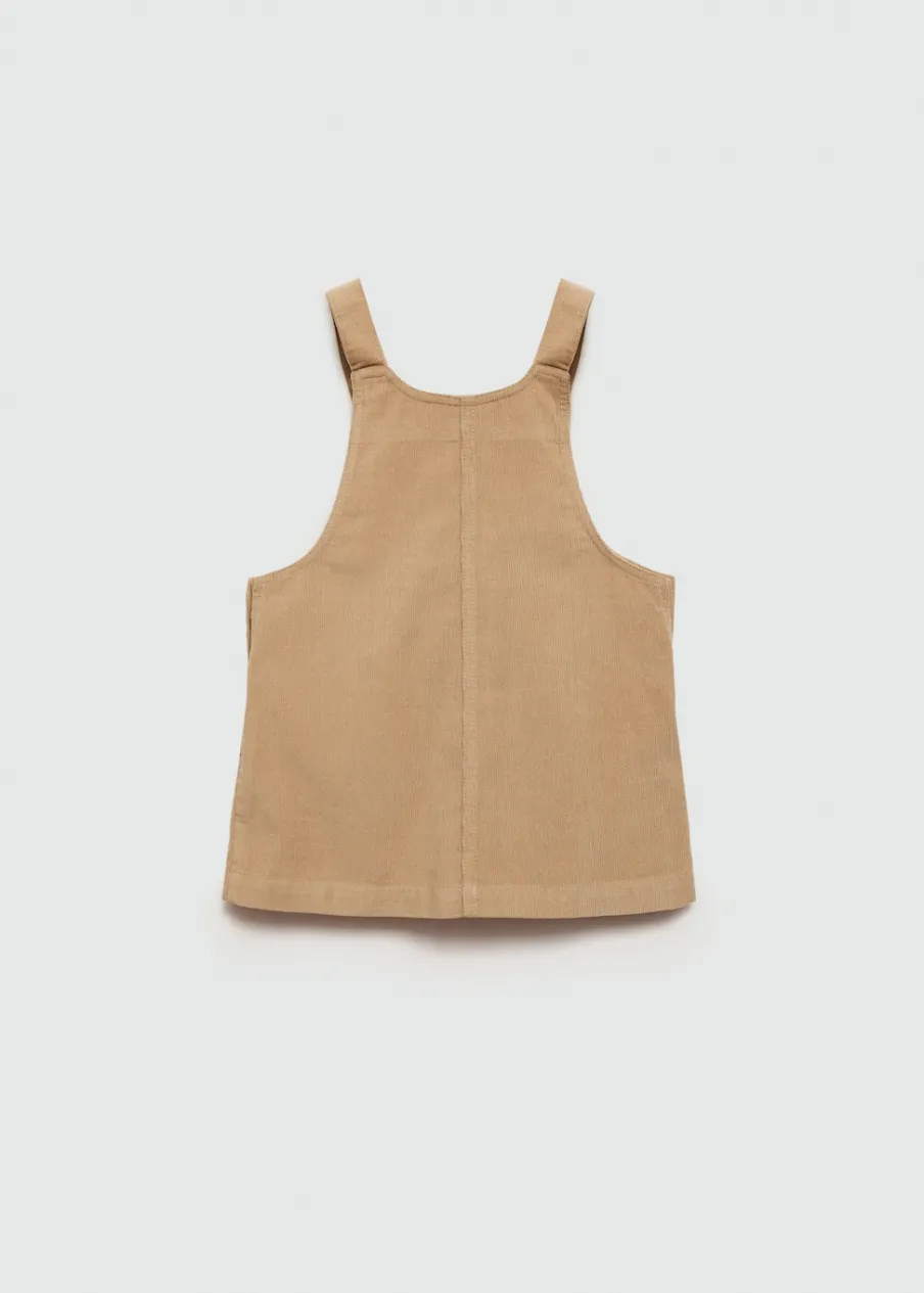 Krótki krój. Tkanina z cienkiego sztruksu. Model prosty. Kieszeń nakładana. Średnia wielkość. Kwadratowy dekolt. Bez rękawów. Zapięcie na guziki. 100% bomull.