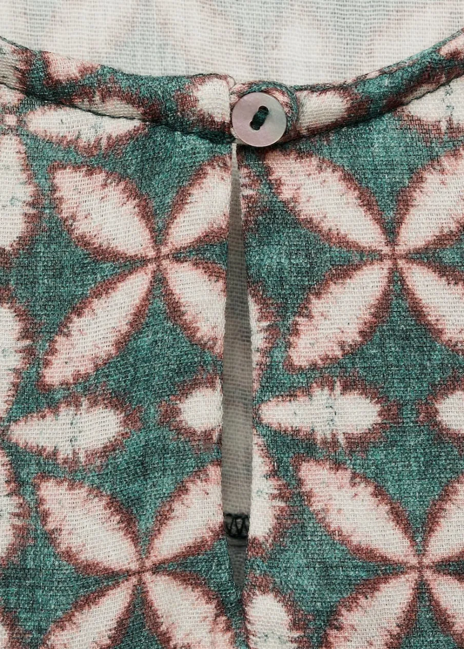 Bawełna 100%. Nadruk. Krótki krój. Z falbanami. Okrągły dekolt. Długi rękaw z elastycznymi mankietami. Zapięcie na guzik.