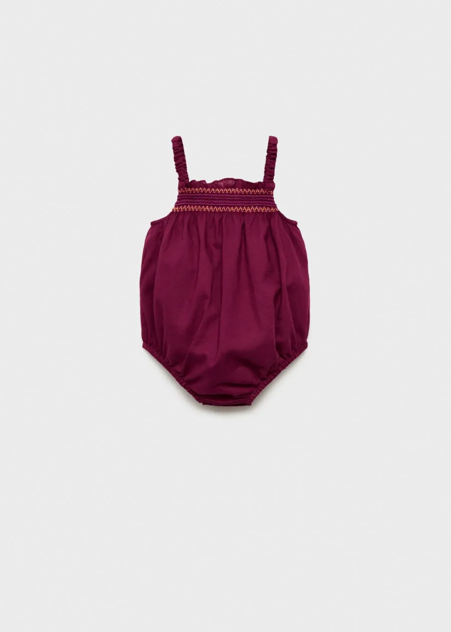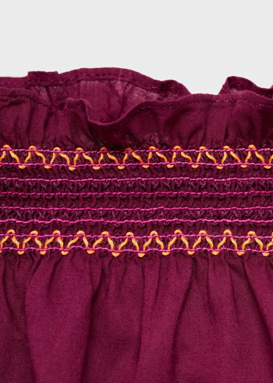 OpisTkanina bawełniana. Haftowany detal. Kwadratowy dekolt. Cienkie ramiączka. Zapięcie na guziki.