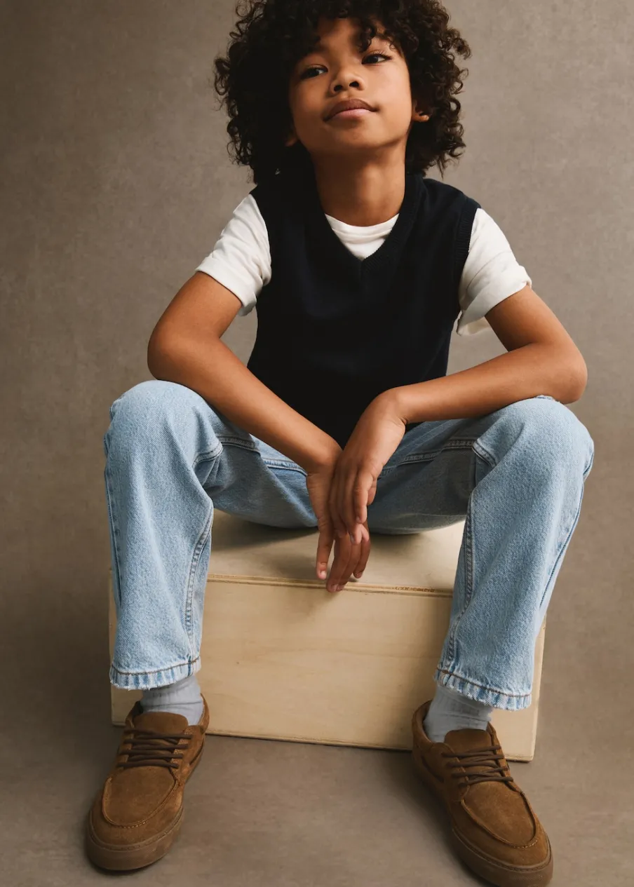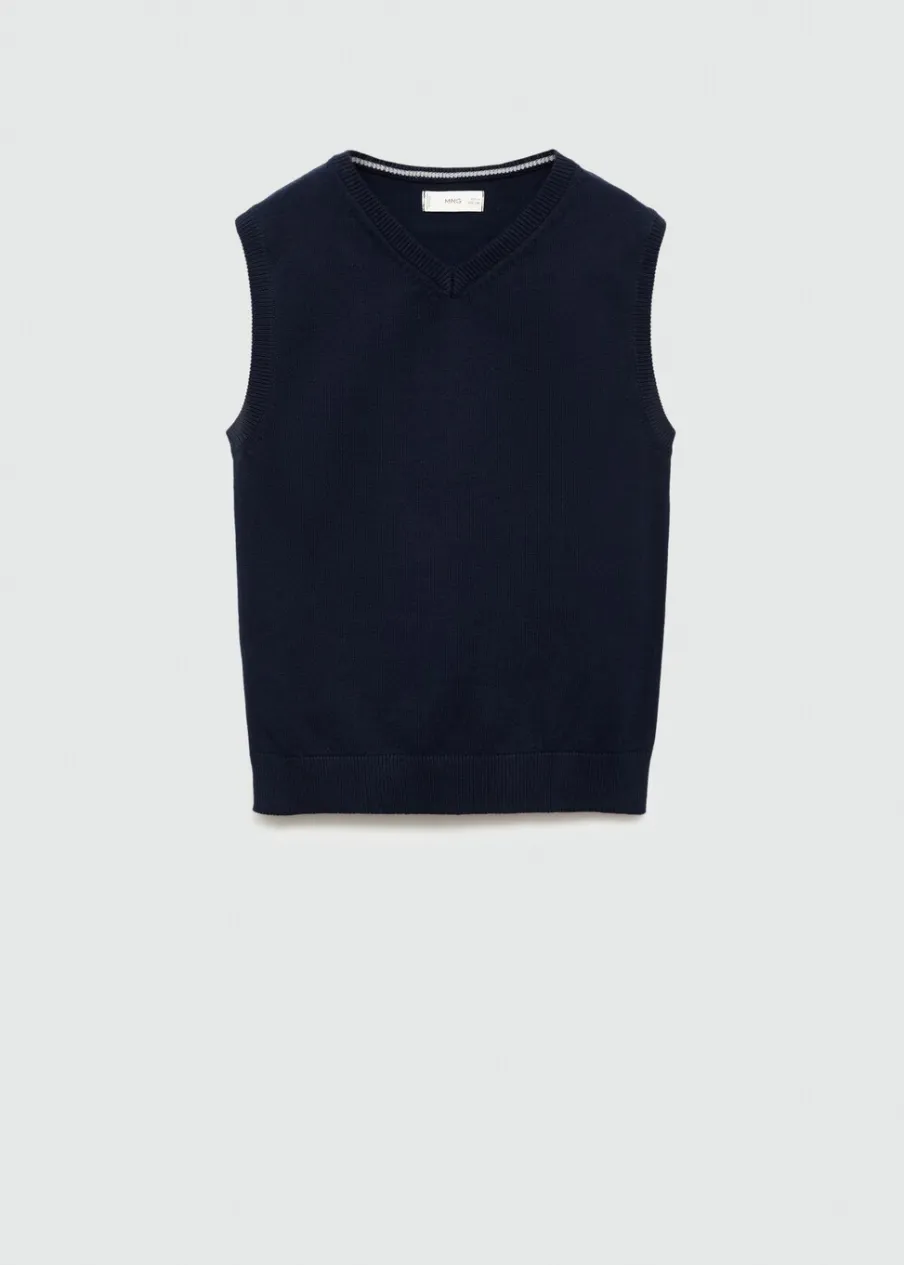 Kolekcja Powrót do szkoły. Tkanina z bawełną. Tkanina z cienkiej dzianiny. Dekolt V. Model prosty. Bez rękawów.