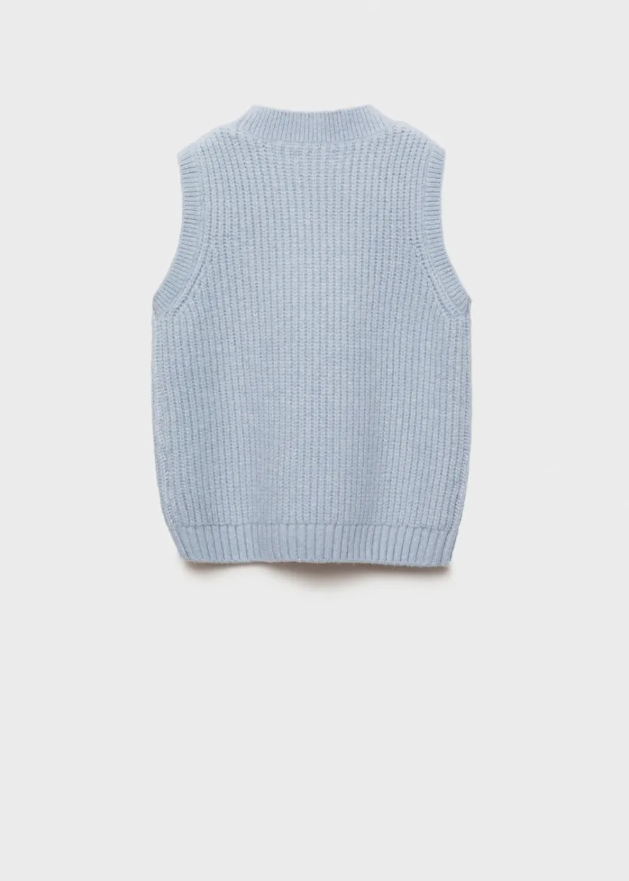 OpisKolekcja Powrót do szkoły. Model prosty. Tkanina z grubej dzianiny. Bez rękawów. Okrągły dekolt.