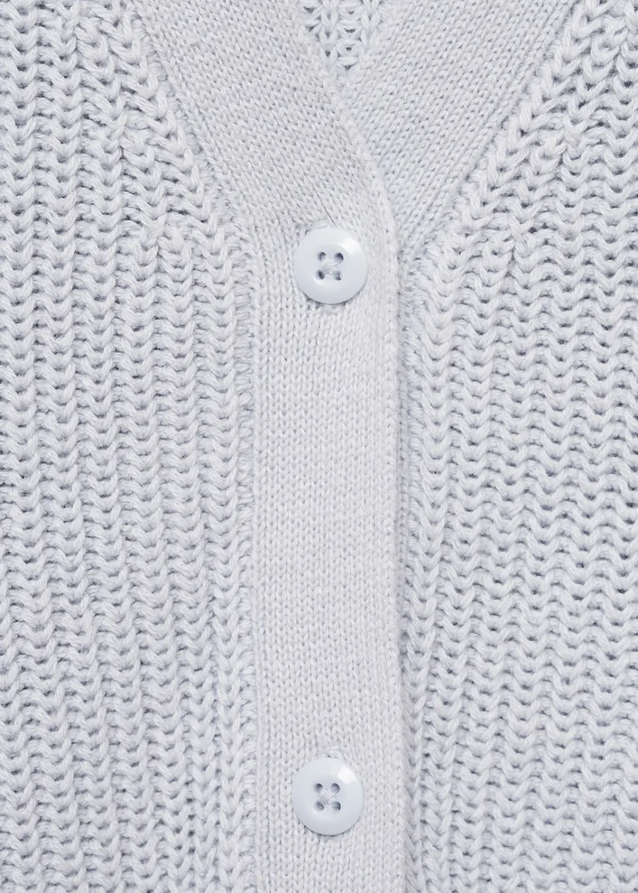 Opis100% bomull. Tkanina z grubej dzianiny. Model prosty. Dekolt V. Długi rękaw. Zapięcie na guziki z przodu.