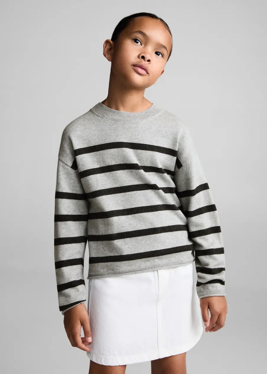 Opis100% bomull. Ściągaczowa tkanina. Model prosty. Okrągły dekolt. Długi rękaw. Wzór w paski.