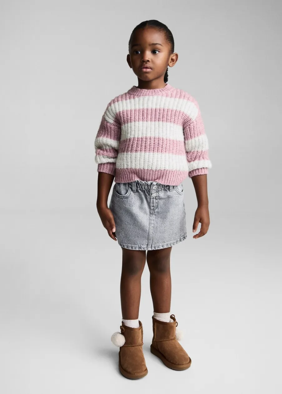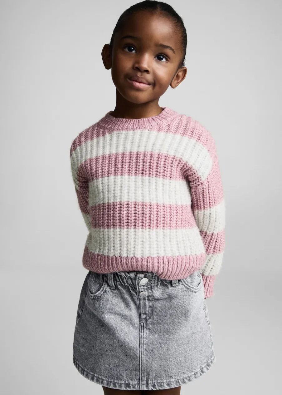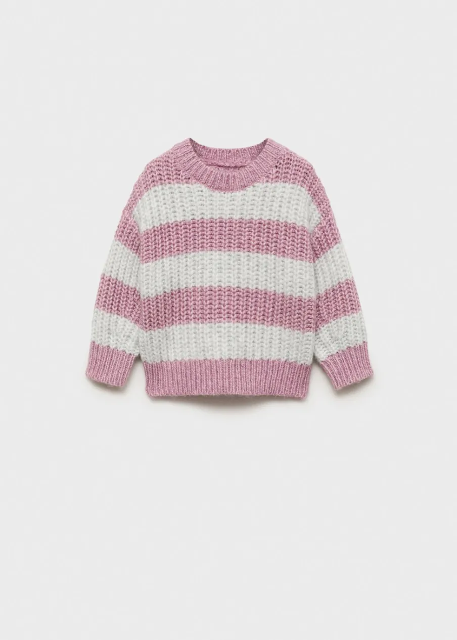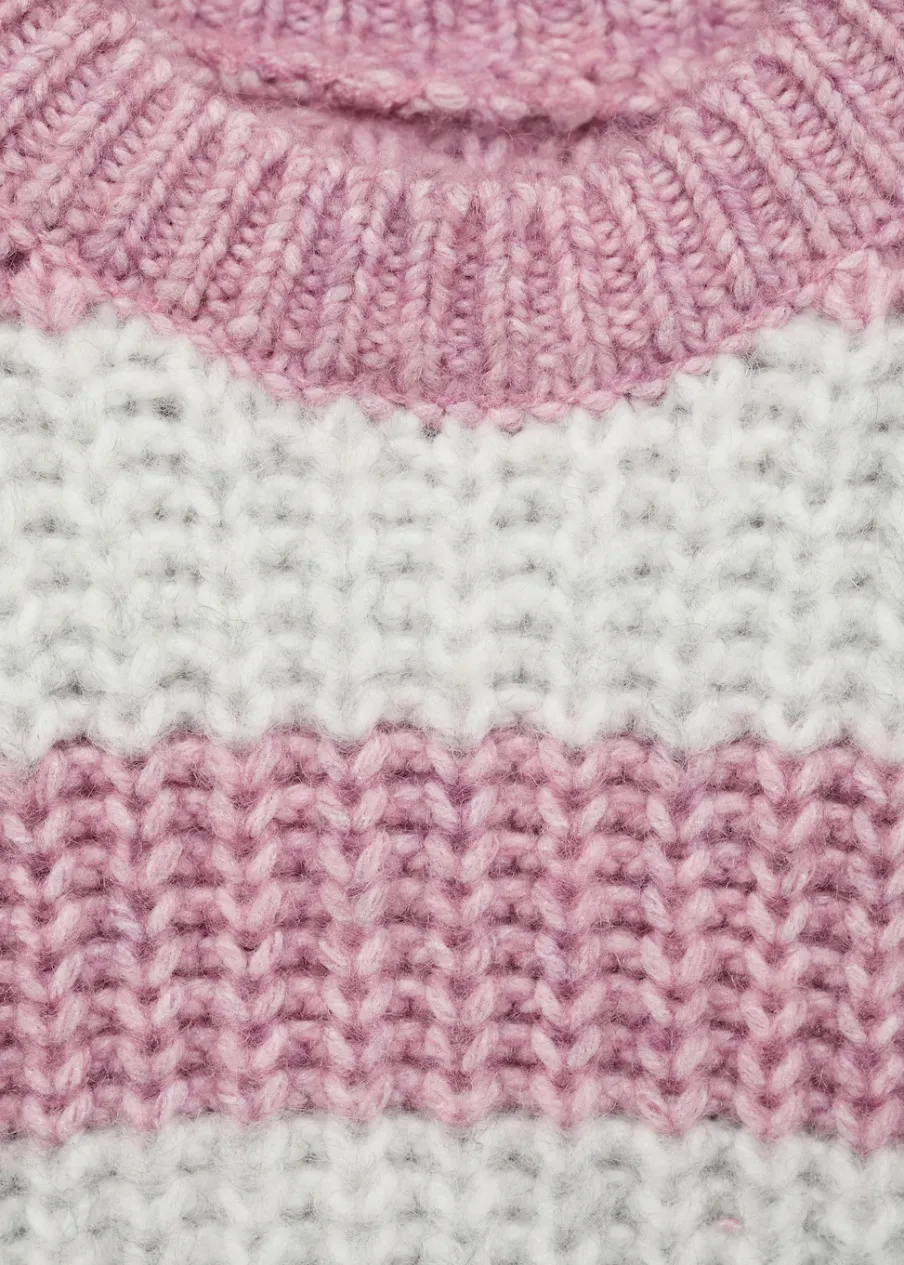 Tkanina z bawełną. Okrągły dekolt. Model prosty. Długi rękaw. Deseń w pasy.