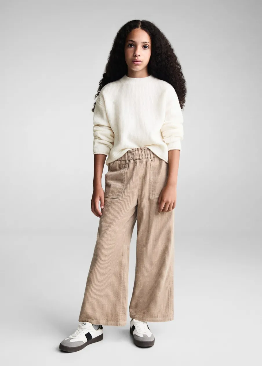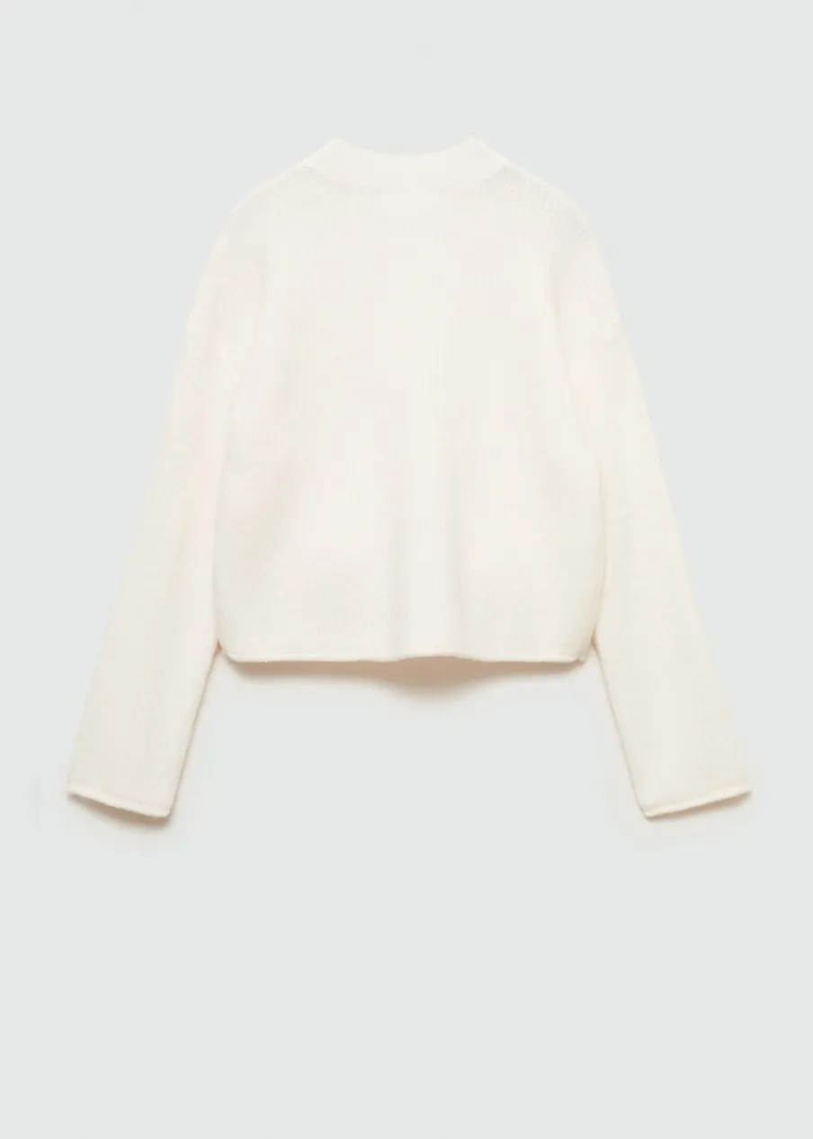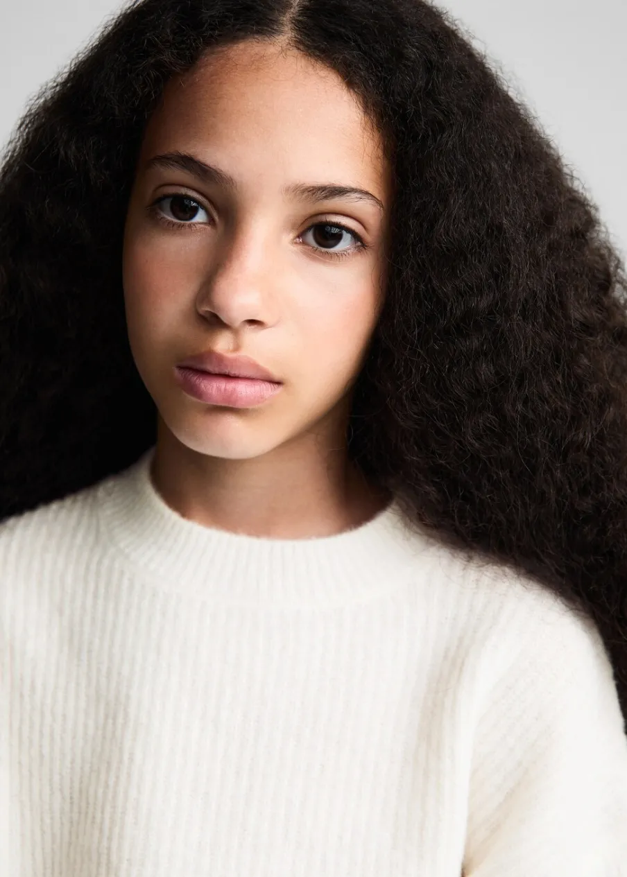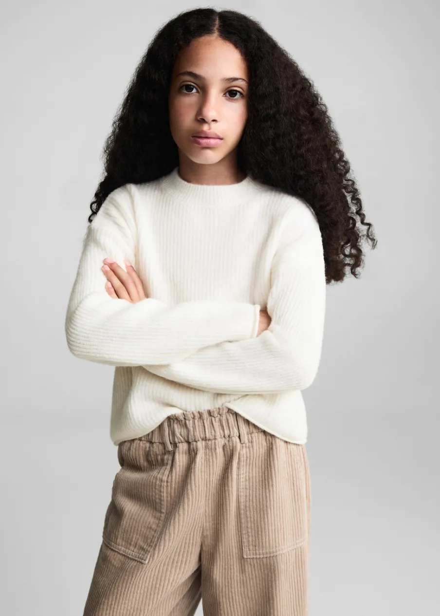 OpisTkanina z grubej dzianiny. Ściągaczowa tkanina. Model prosty. Okrągły dekolt. Długi rękaw.