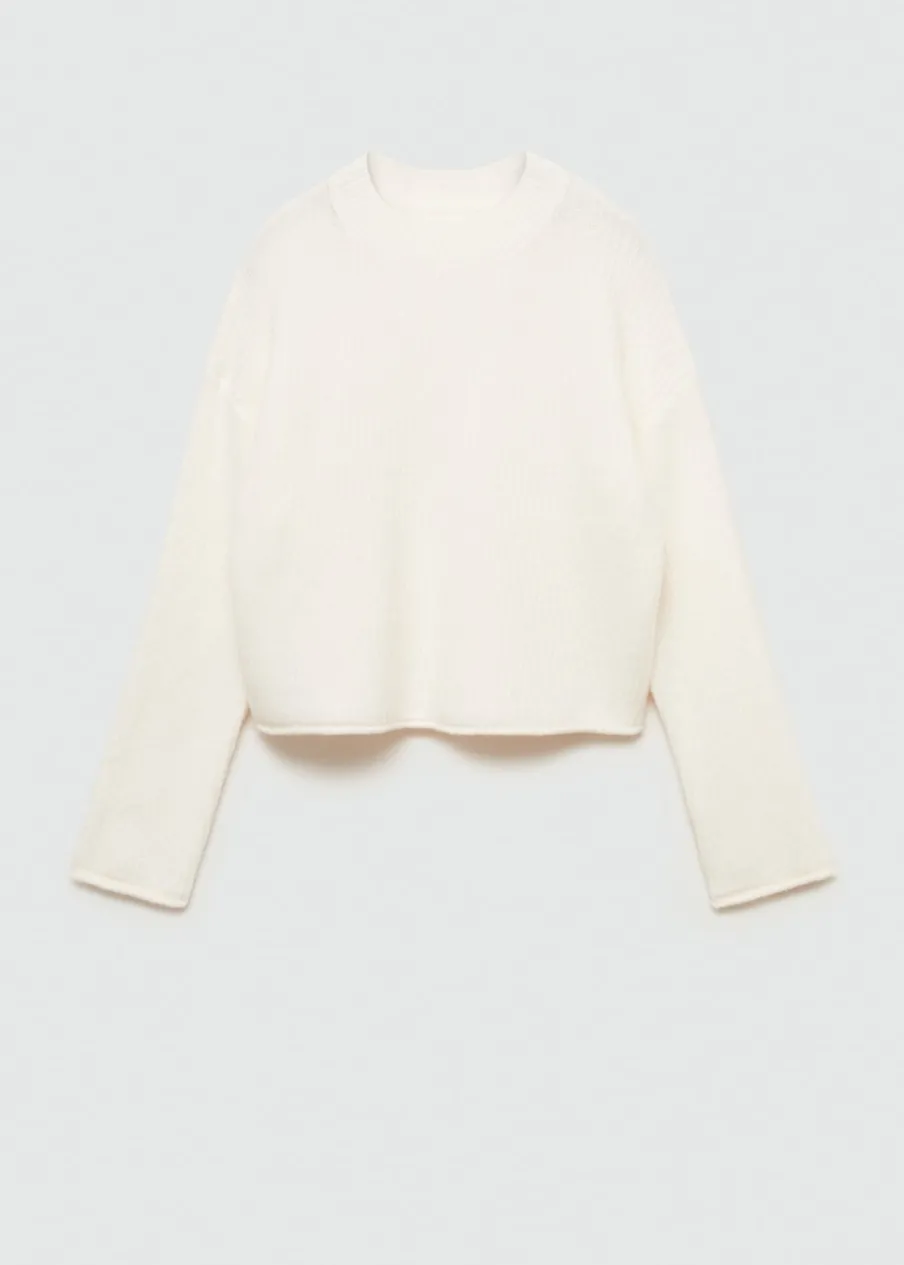Tkanina z grubej dzianiny. Ściągaczowa tkanina. Model prosty. Okrągły dekolt. Długi rękaw.
