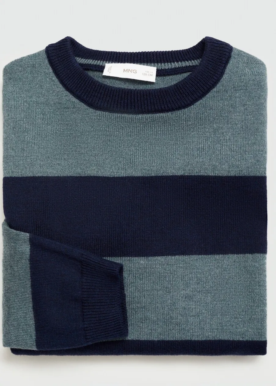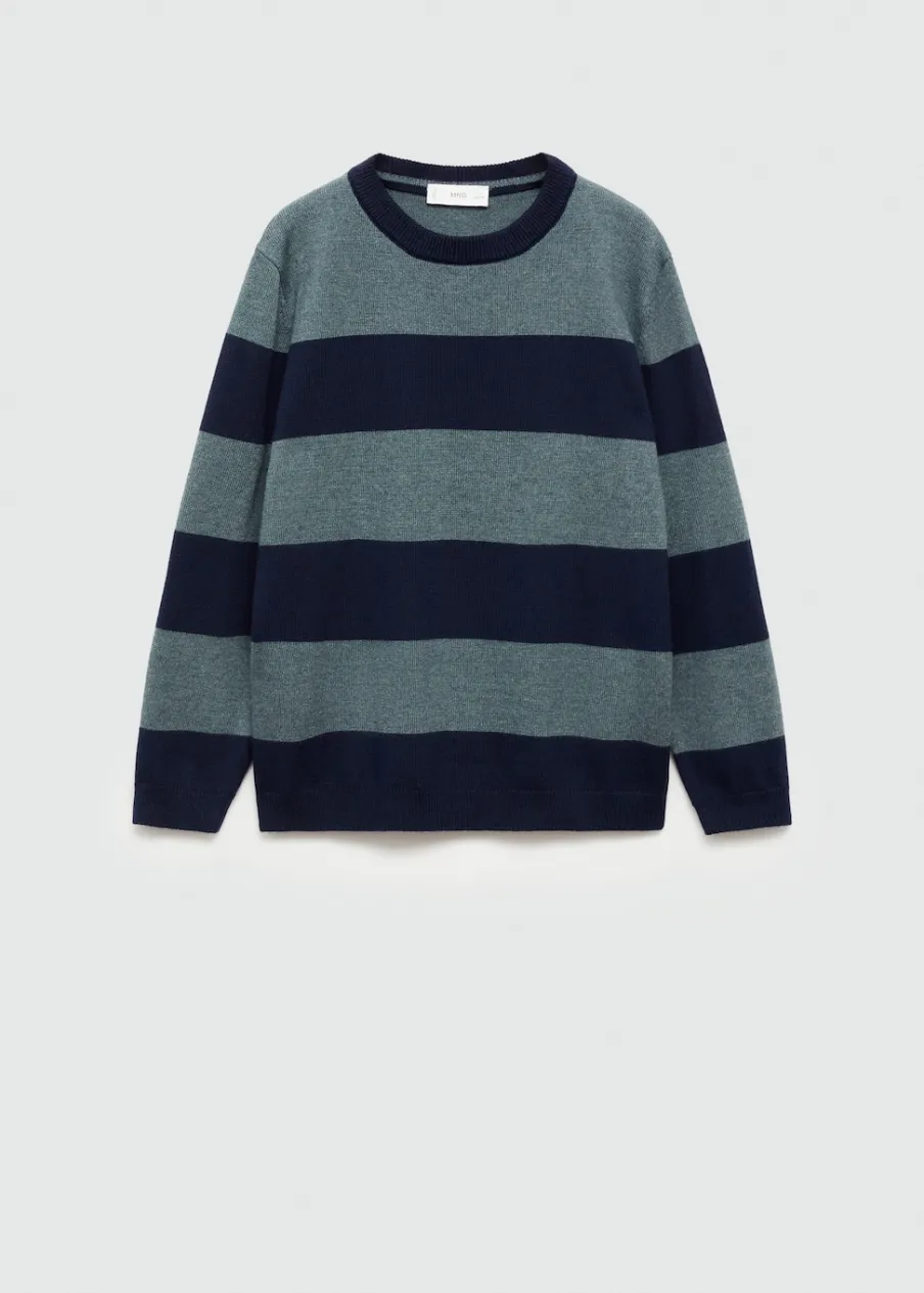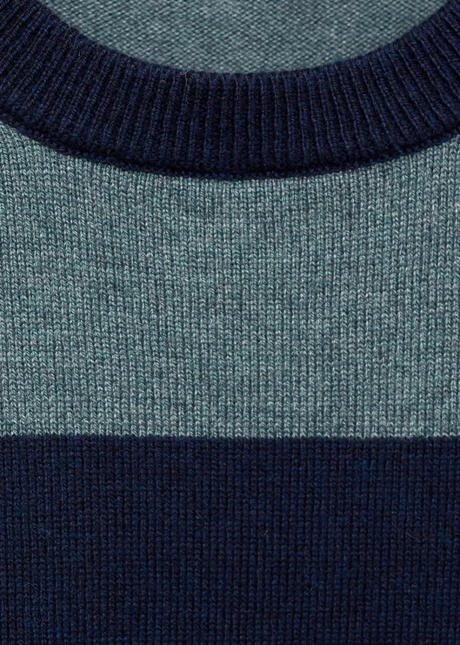 Tkanina z cienkiej dzianiny. Model prosty. Okrągły dekolt. Długi rękaw. Wzór w paski.