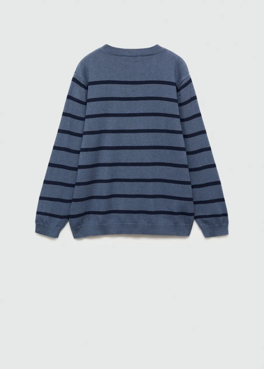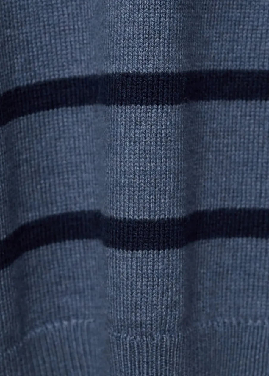 OpisModel prosty. Dzianinowa tkanina. Okrągły dekolt. Długi rękaw. Bez zapięcia. Wzór w paski.