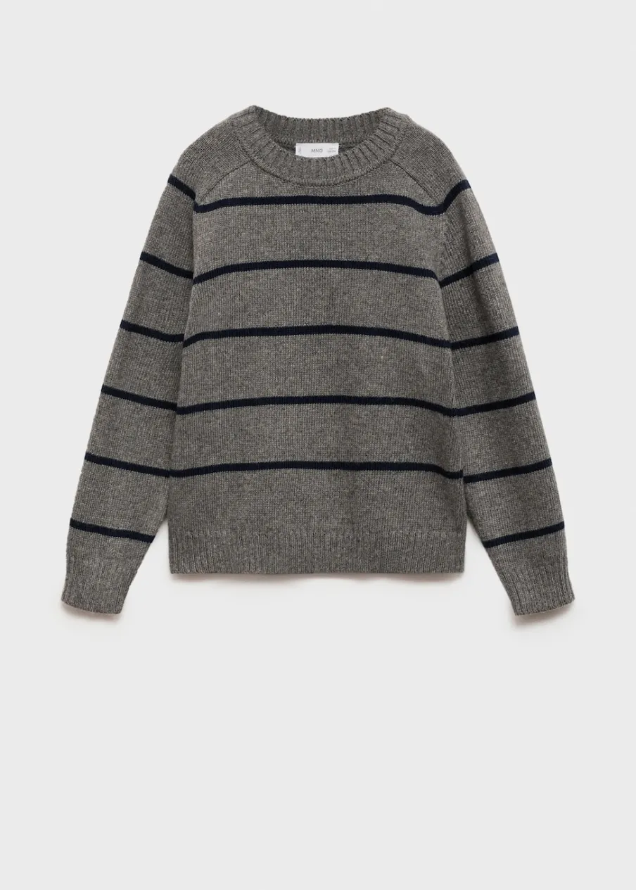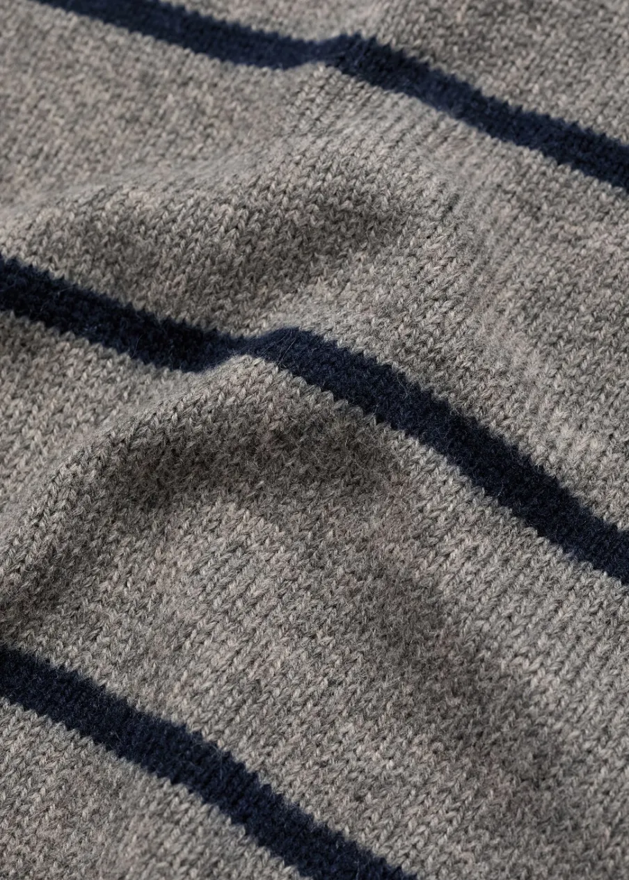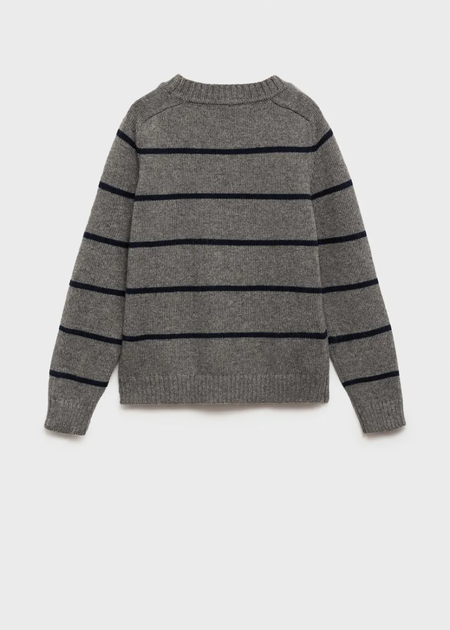 Dzianina średniej grubości. Wzór w paski. Okrągły dekolt. Długi rękaw. Model prosty.
