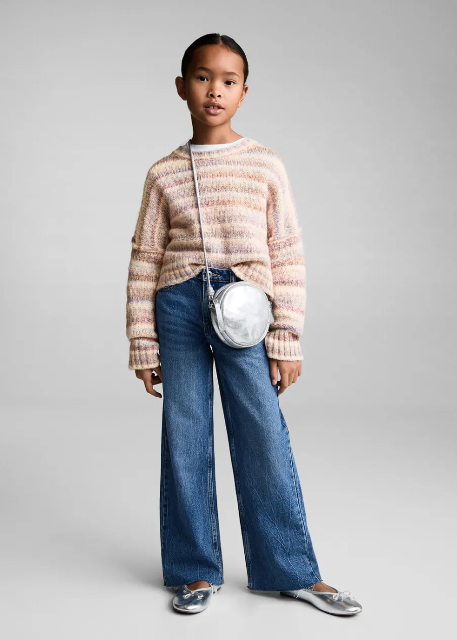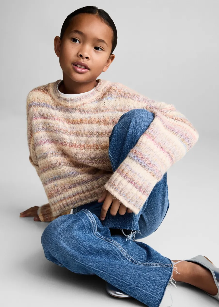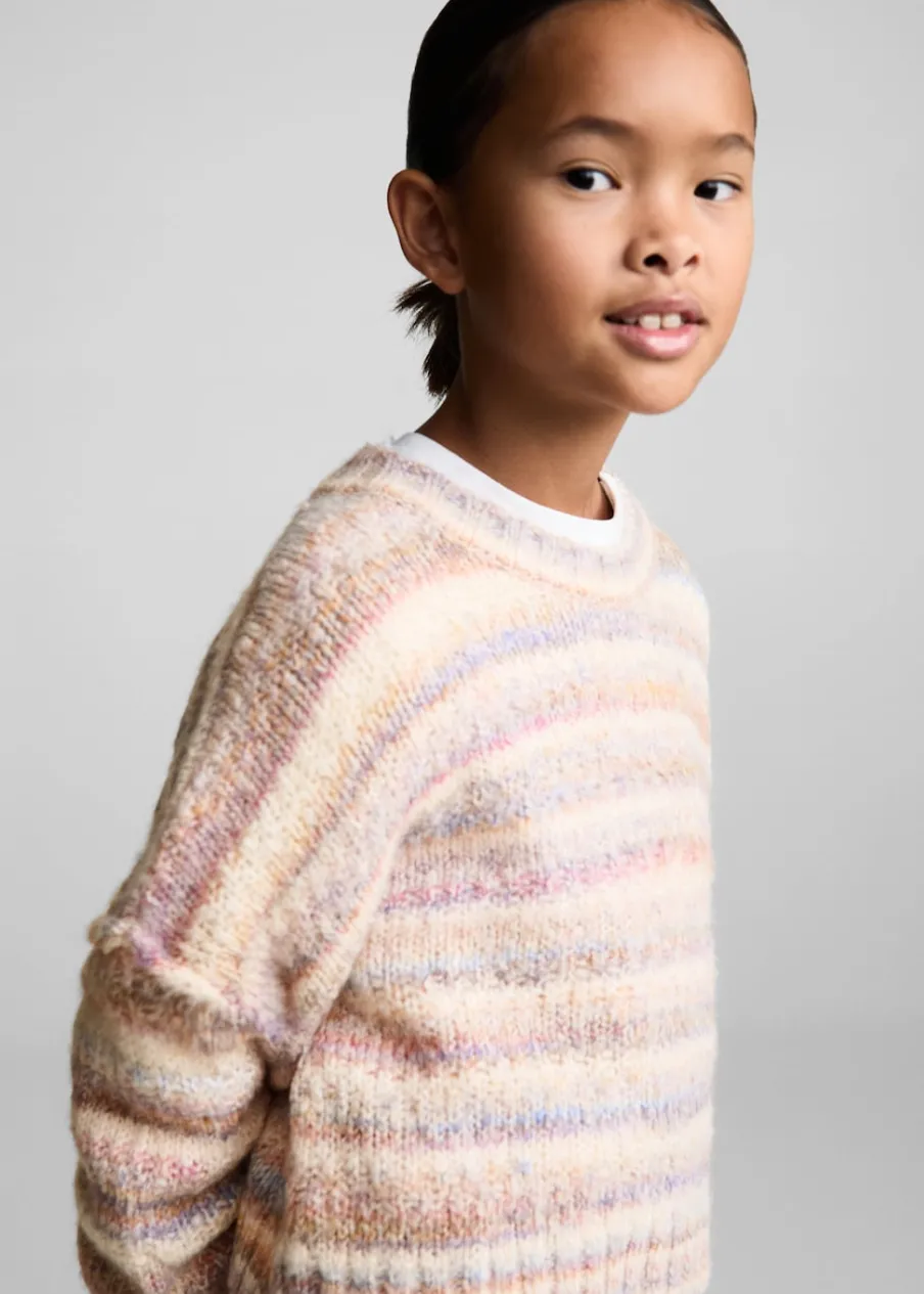 Kolekcja Powrót do szkoły. Tkanina z grubej dzianiny. Model oversize. Okrągły dekolt. Długi rękaw. Wzór w paski.