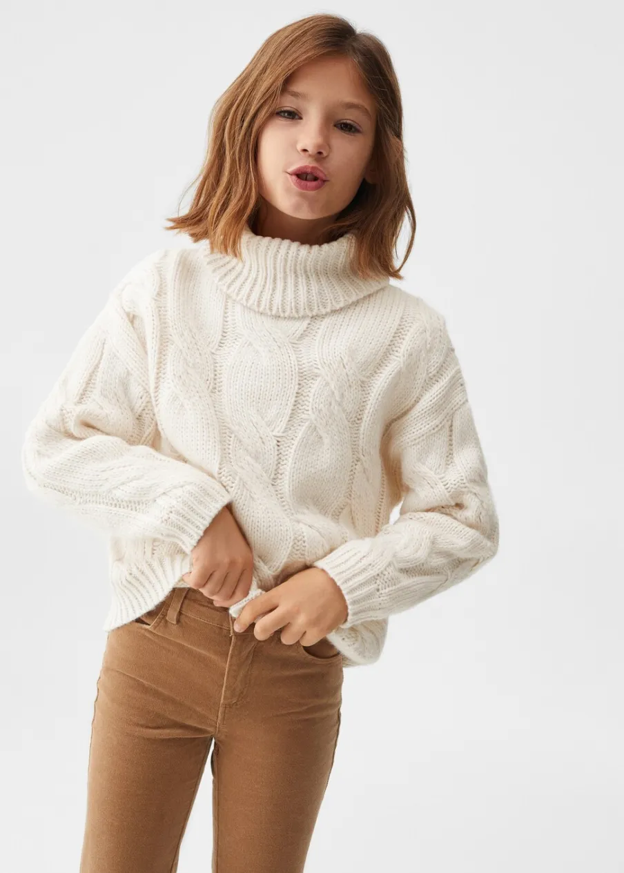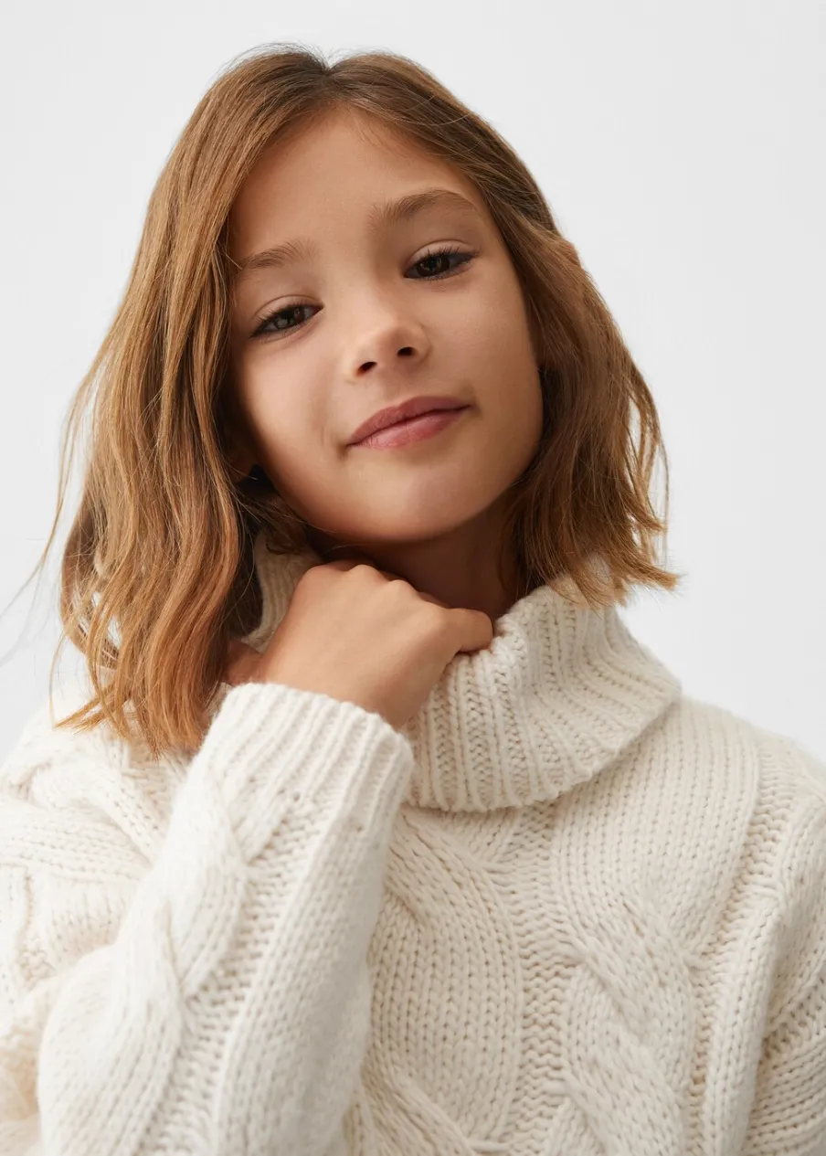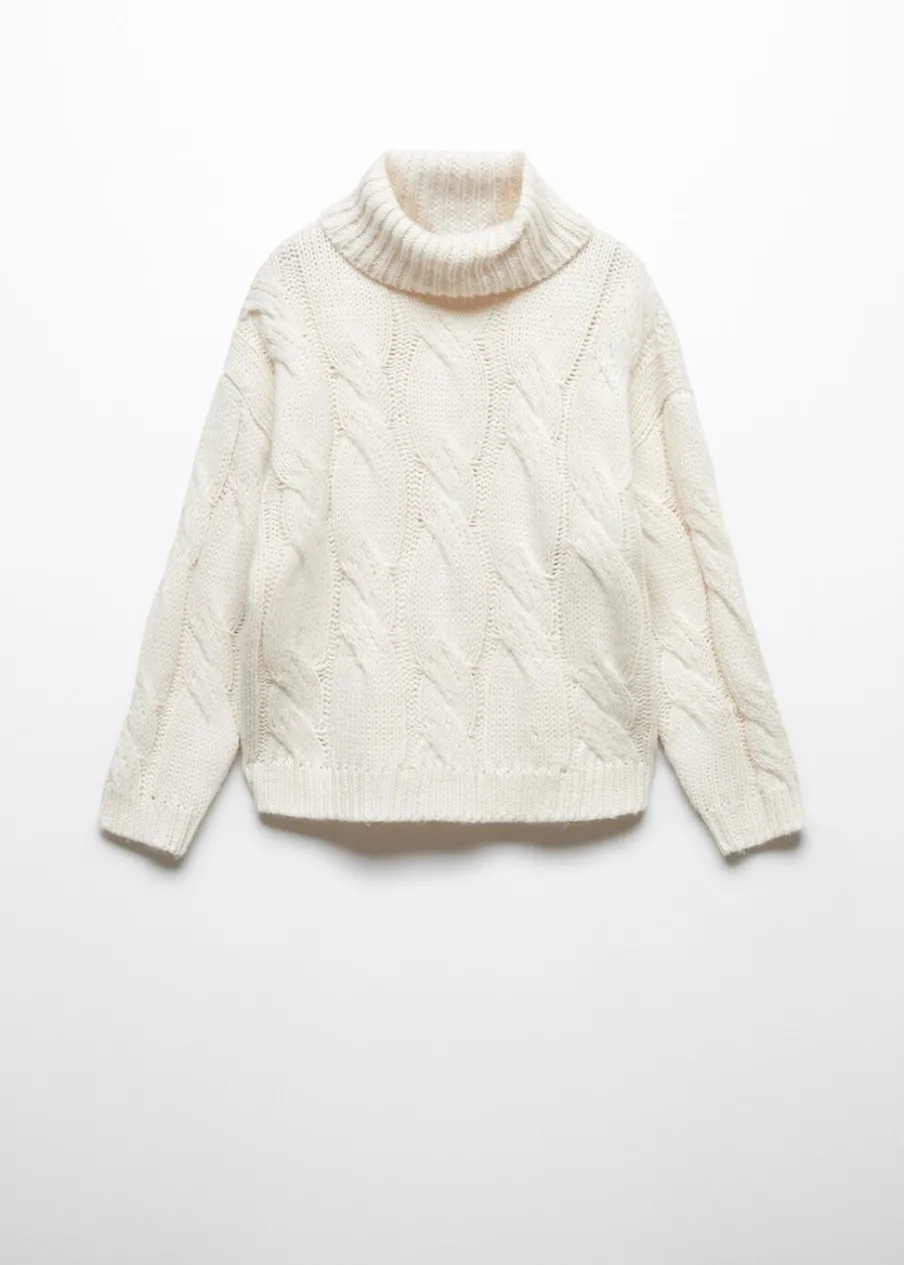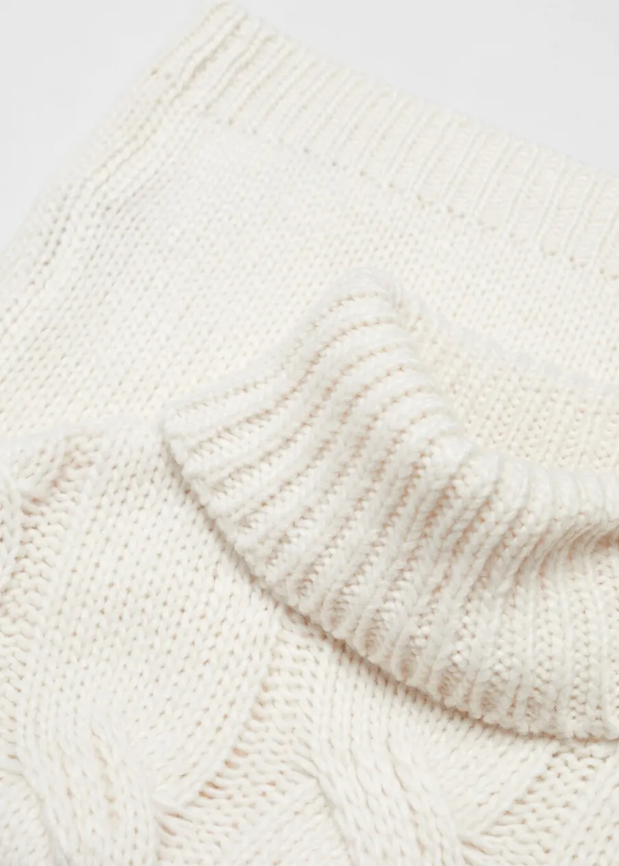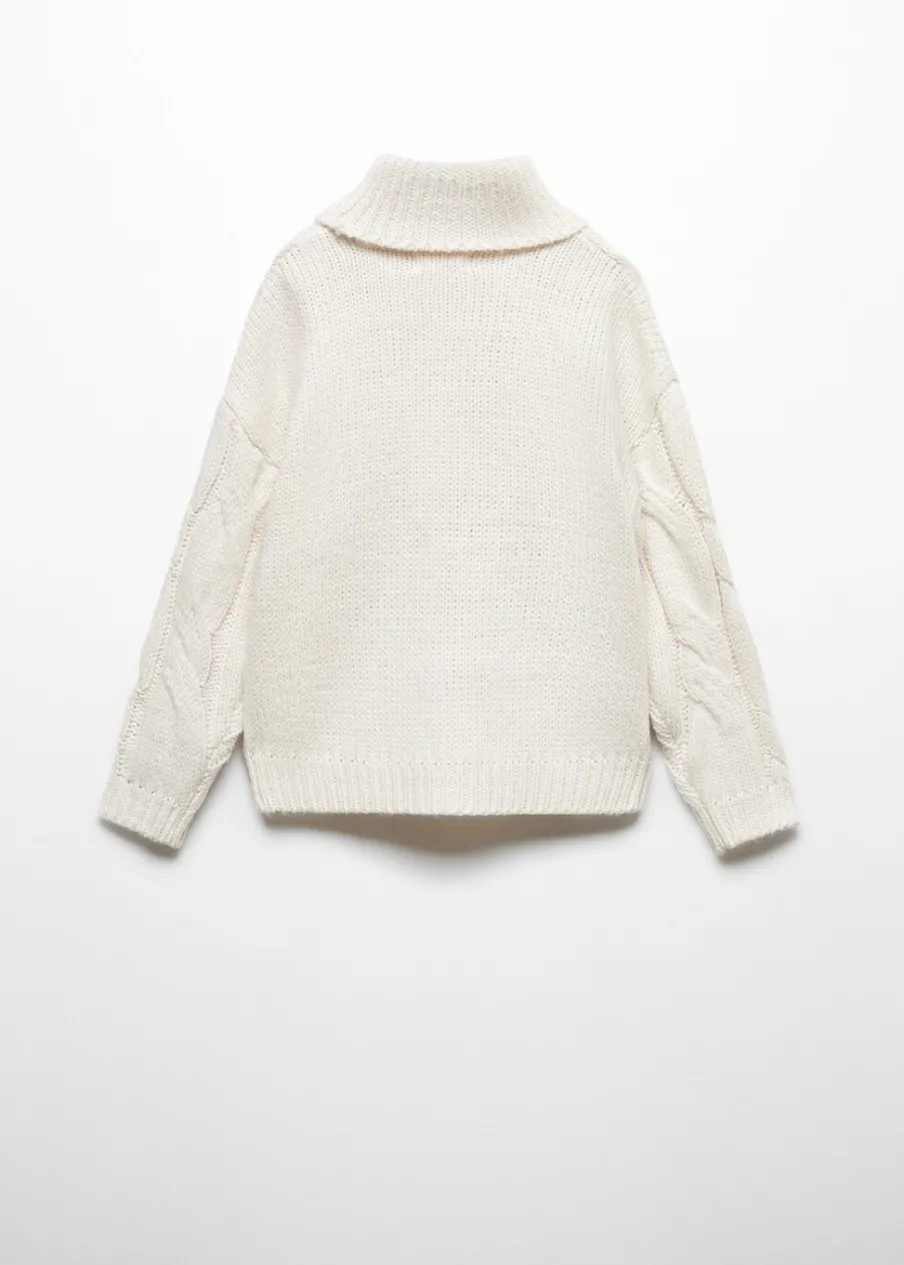Kolekcja Basics, tkanina z grubej dzianiny, dzianina ze splotem, prosty krój, zakładany kołnierz, długi rękaw, golf, bez zapięcia.