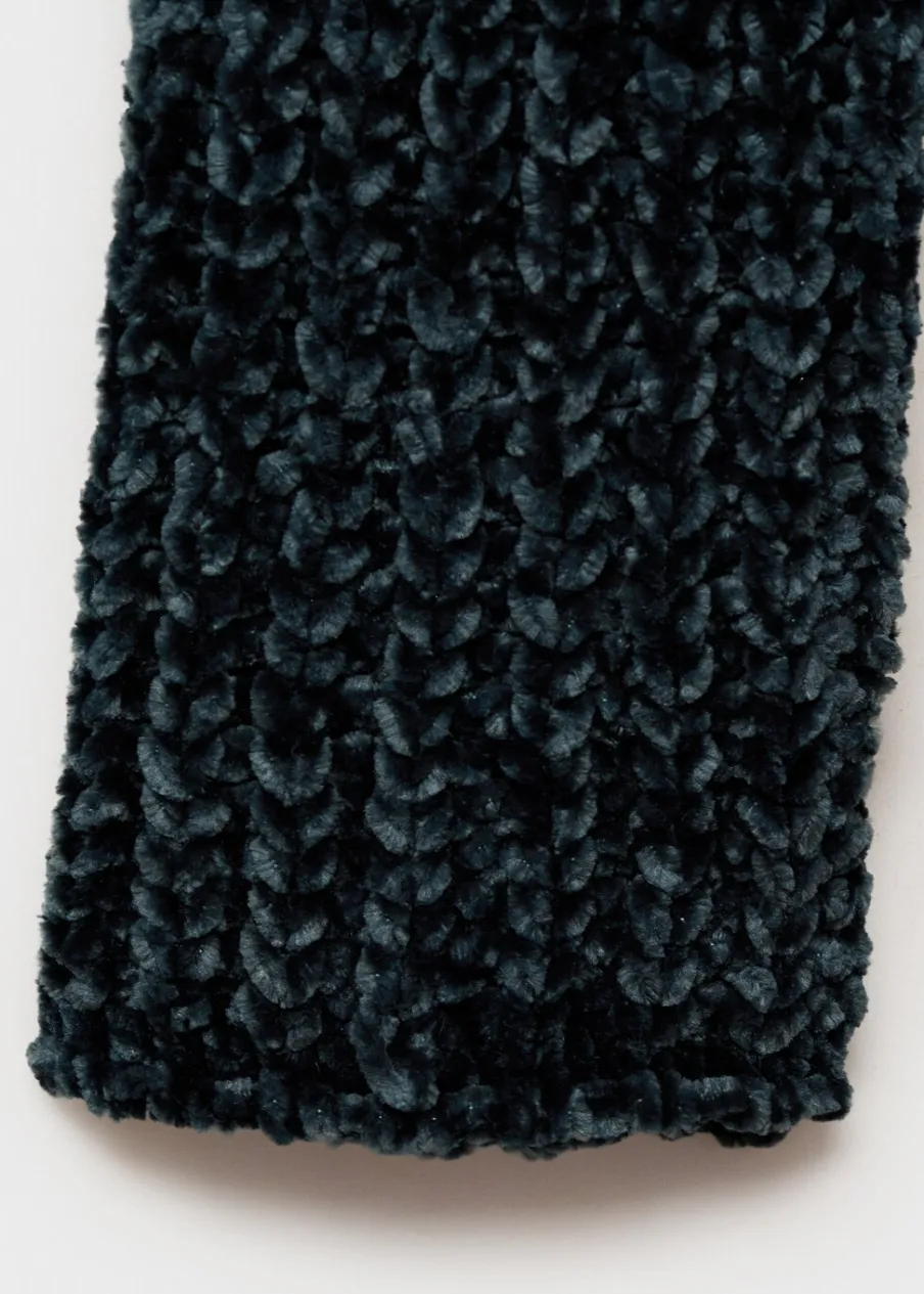 OpisTkanina z grubej dzianiny. Model prosty. Okrągły dekolt. Długi rękaw. Bez zapięcia.