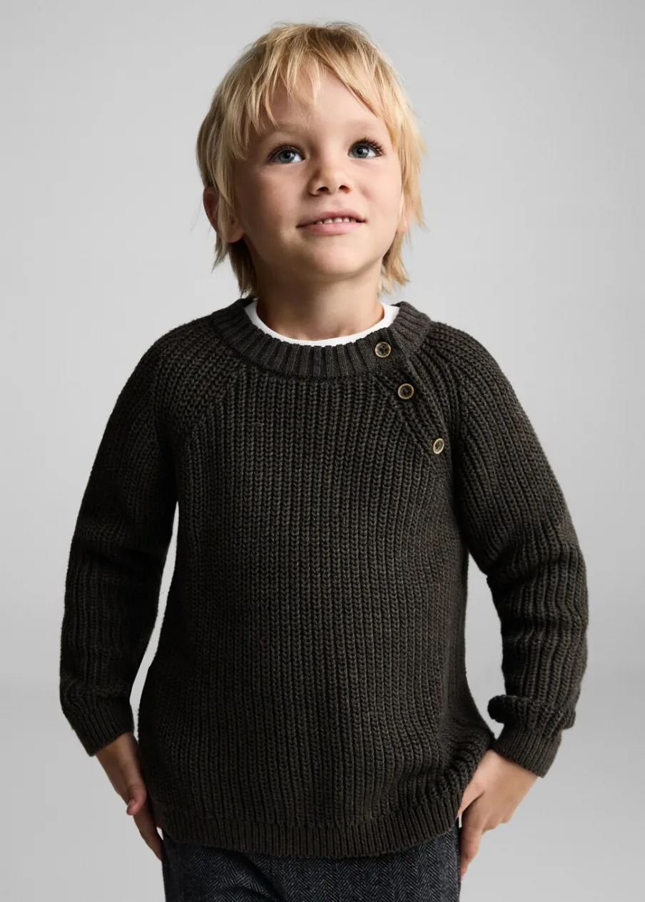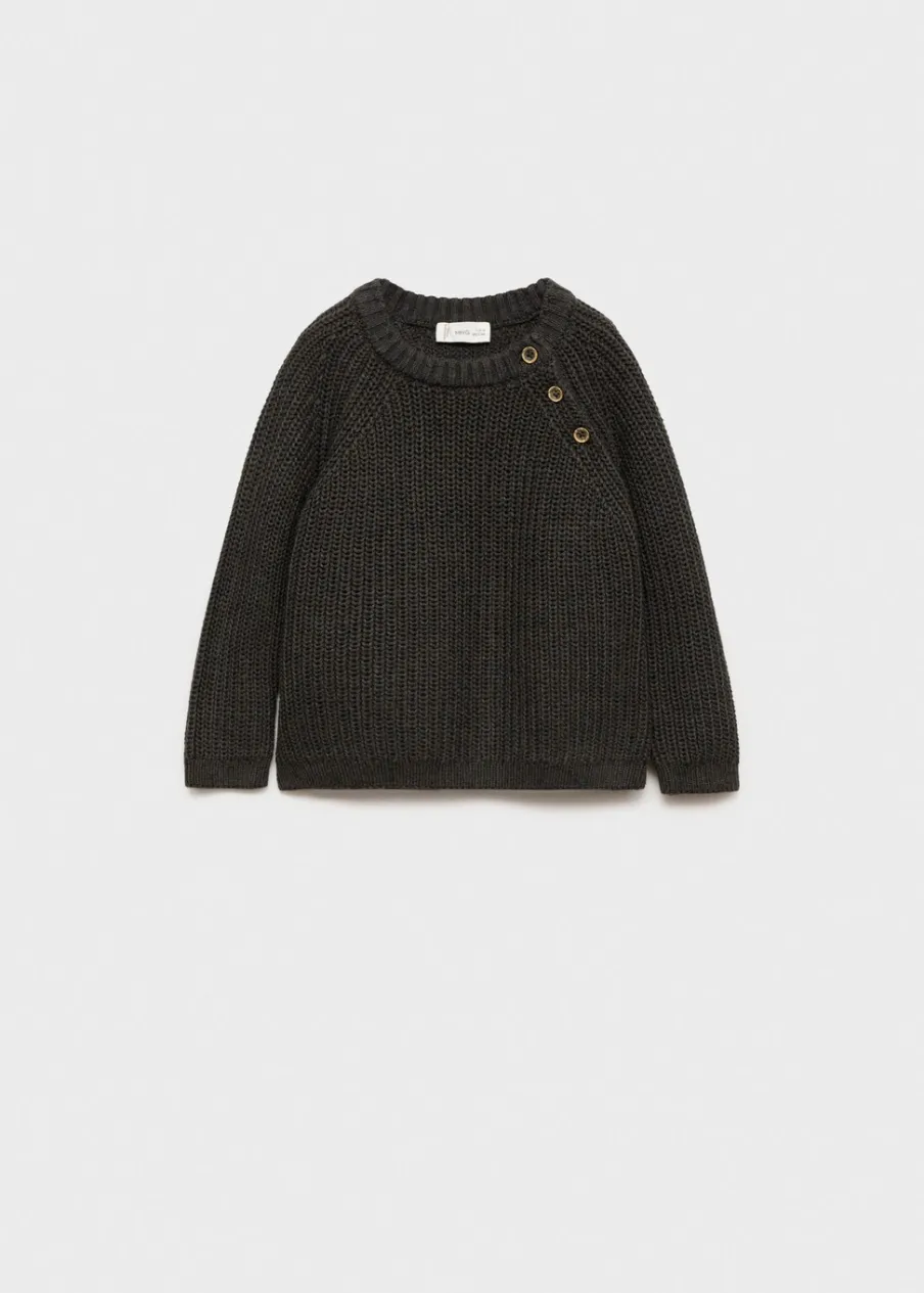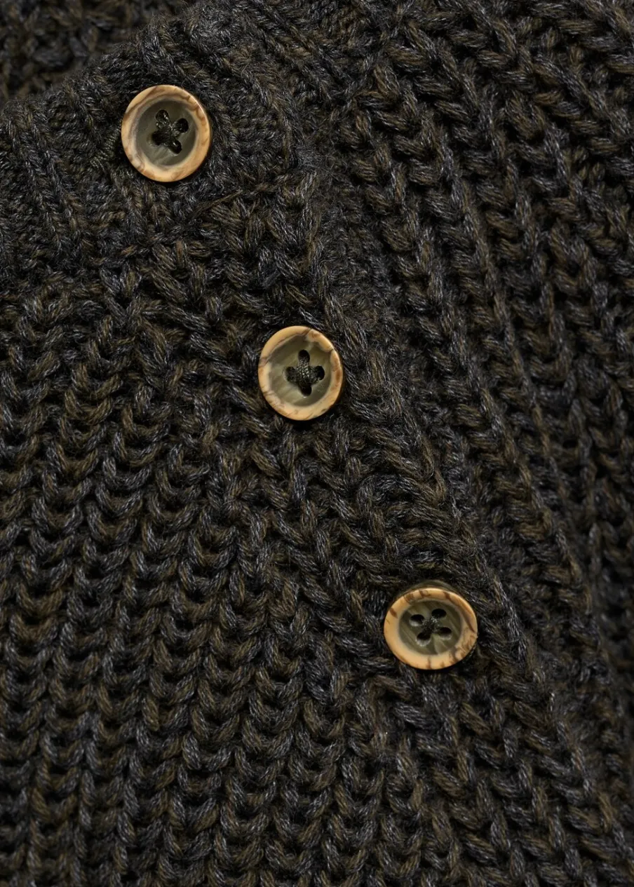 OpisTkanina z grubej dzianiny. Okrągły dekolt. Guziki z boku. Długi rękaw. Model prosty.