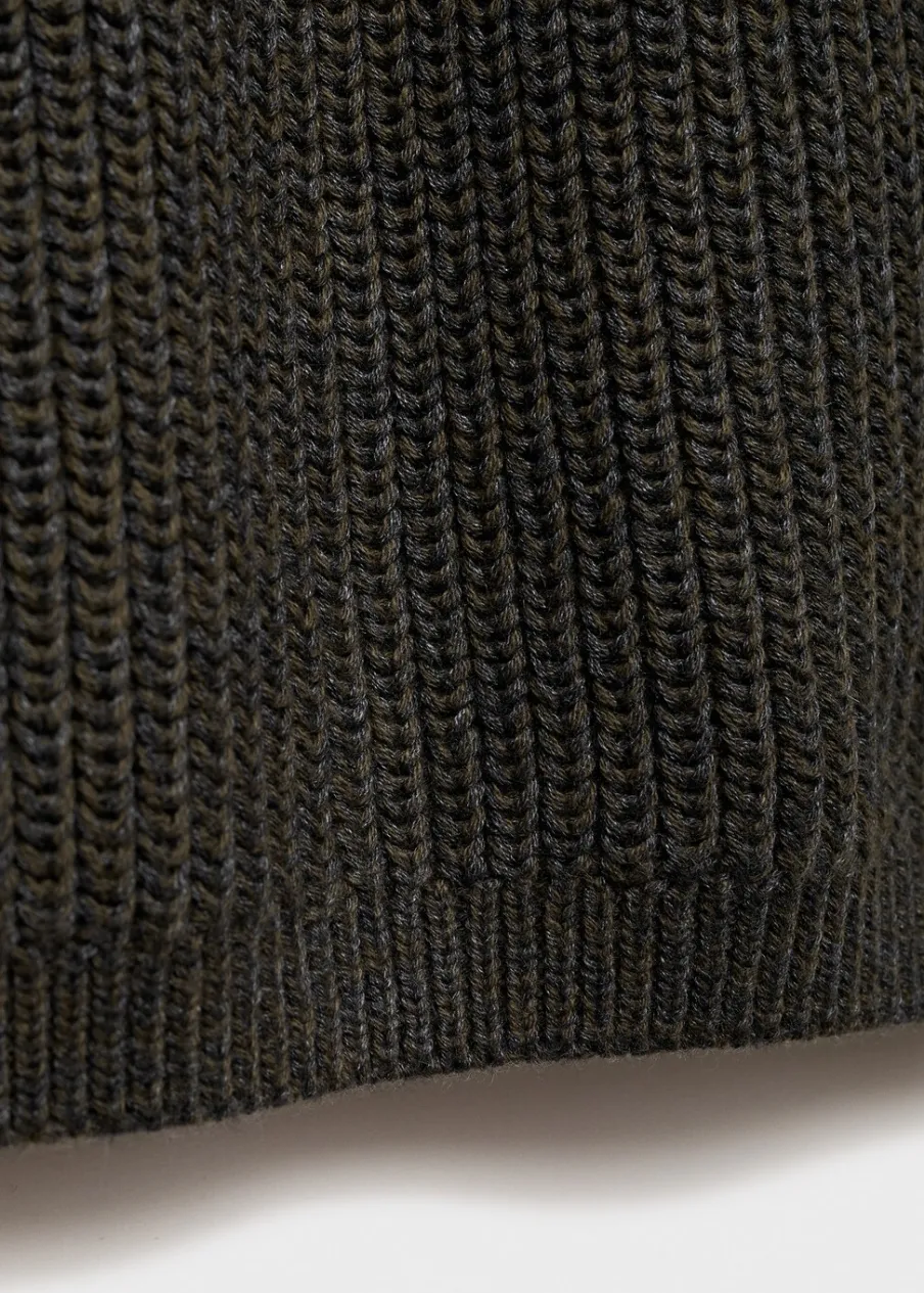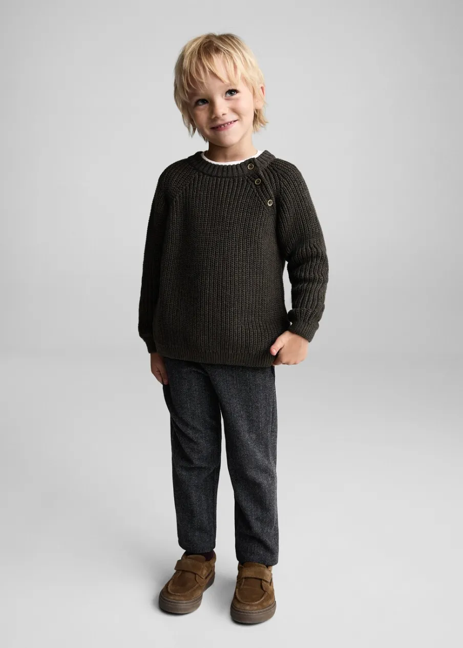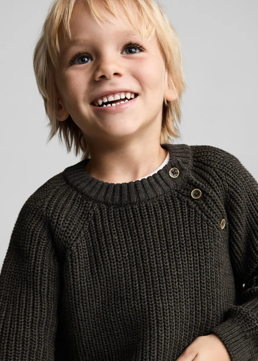 OpisTkanina z grubej dzianiny. Okrągły dekolt. Guziki z boku. Długi rękaw. Model prosty.