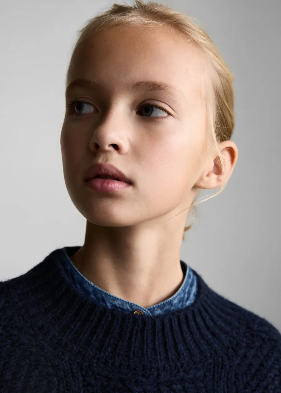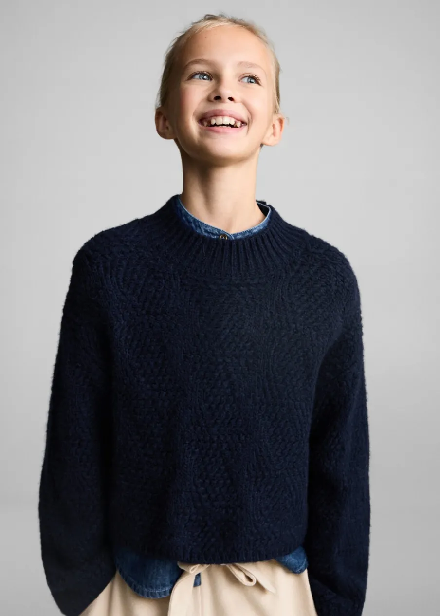 OpisDzianina. Tkanina z wełną. Model prosty. Półgolf. Długi rękaw.