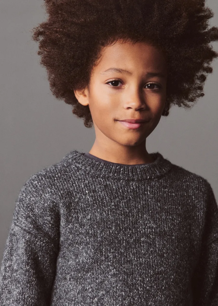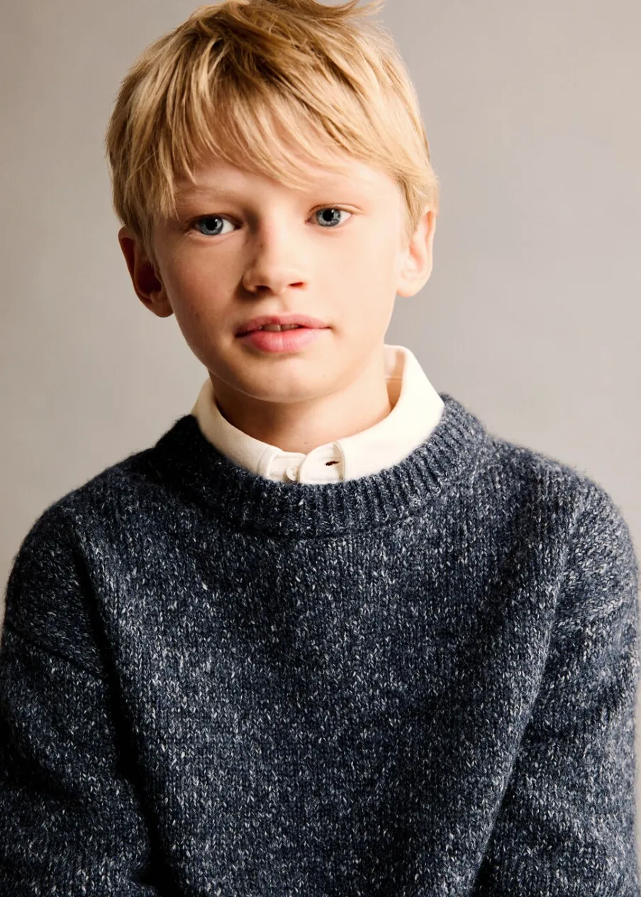 Tkanina z grubej dzianiny. Model prosty. Okrągły dekolt. Długi rękaw. Bez zapięcia. Kolekcja Bożonarodzeniowa.