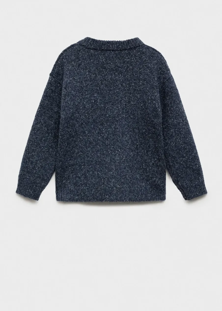 OpisTkanina z grubej dzianiny. Model prosty. Okrągły dekolt. Długi rękaw. Bez zapięcia. Kolekcja Bożonarodzeniowa.