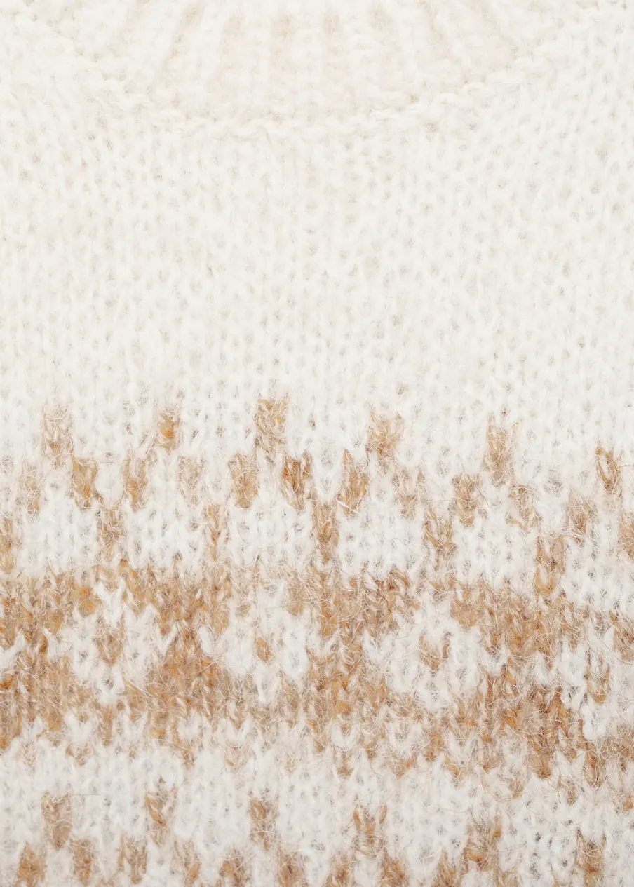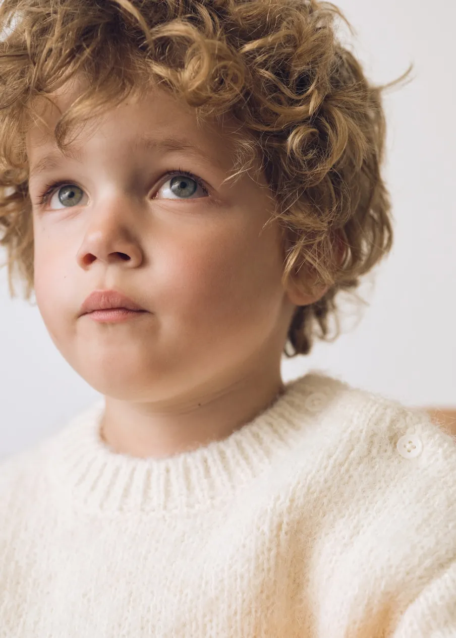 OpisPowrót do szkoły. Model prosty. Zapięcie na boczne guziki. Długi rękaw. Żakardowy wzór. Okrągły dekolt.