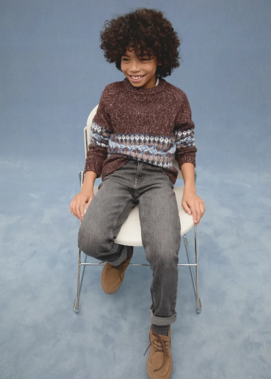 Długi rękaw. Model prosty. Okrągły dekolt. Dzianinowa tkanina. Kolekcja Bożonarodzeniowa.