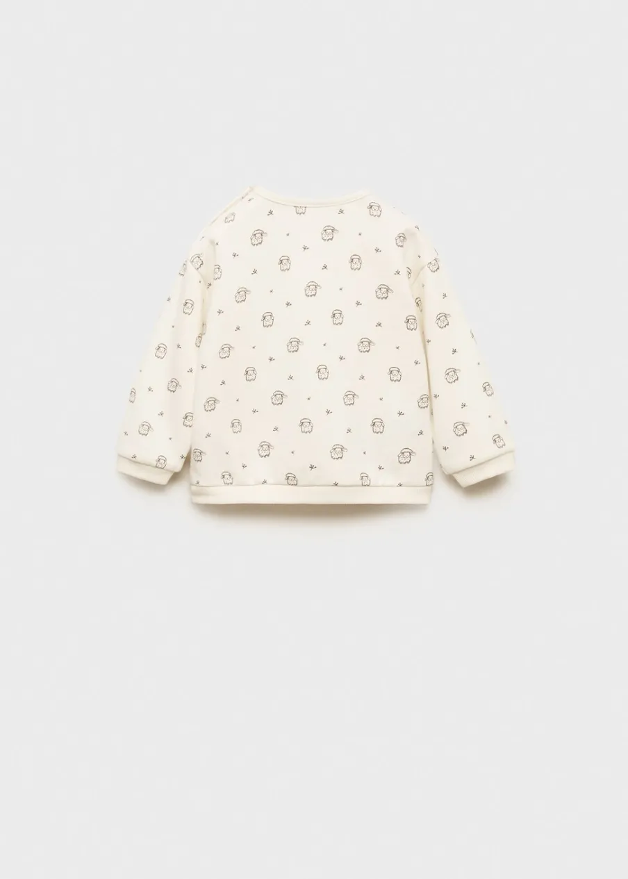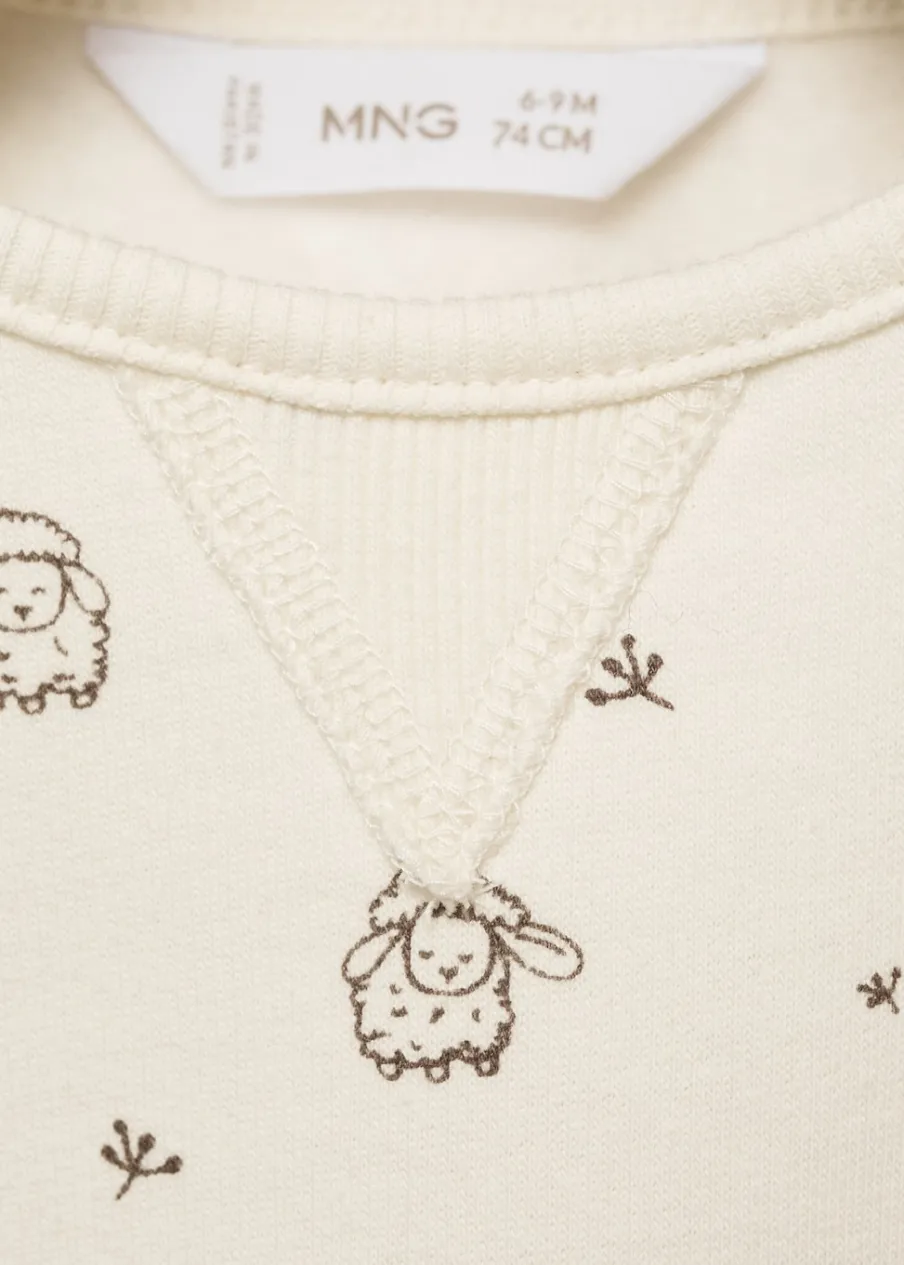 Bawełna organiczna. Nadruk zwierzęcia. Model prosty. Okrągły dekolt. Długi rękaw. Bez zapięcia.