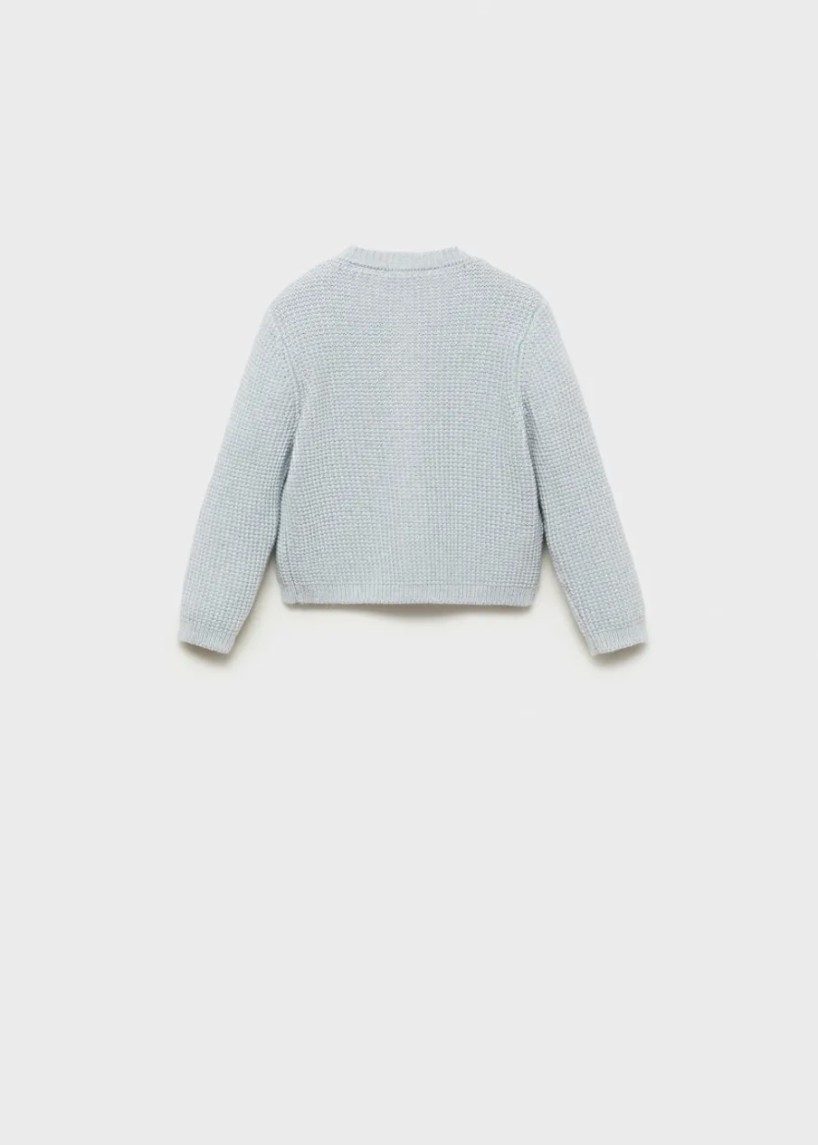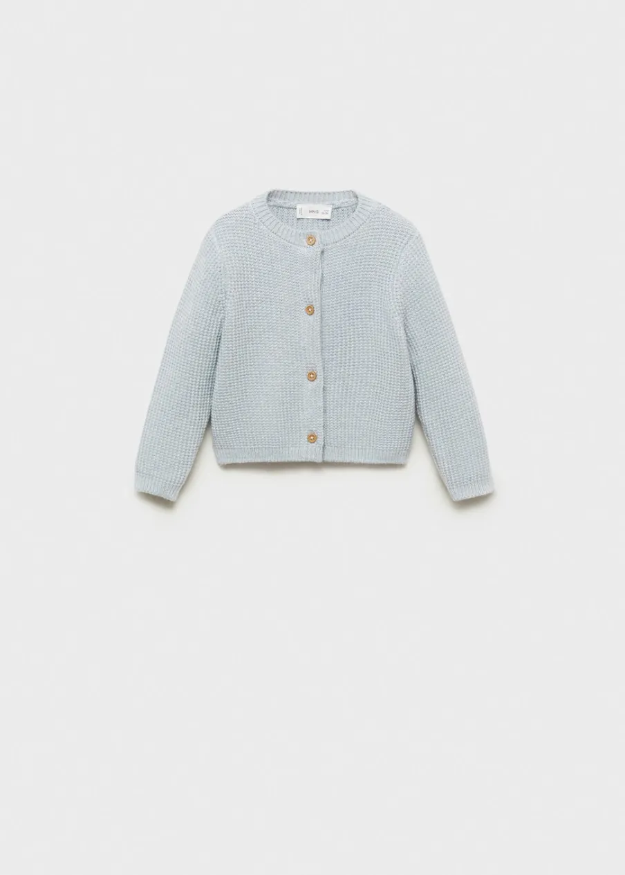 Bawełniana tkanina. Okrągły dekolt. Długi rękaw. Kołnierz, mankiety i dół wykończone ściągaczem. Guziki z imitacji drewna. Zapięcie na guziki z przodu.