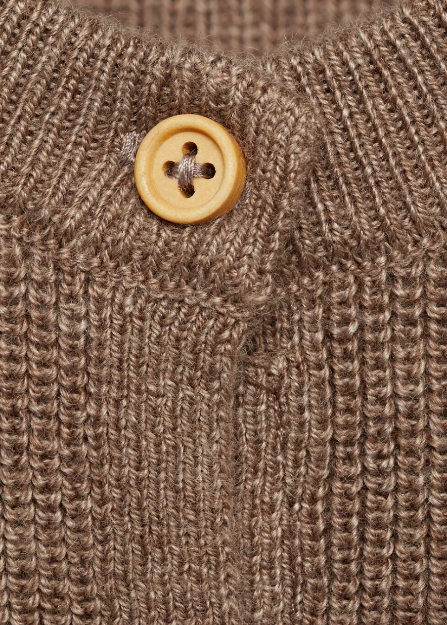 Bawełniana tkanina. Dzianina. Model prosty. Okrągły dekolt. Długi rękaw. Zapięcie na guziki.