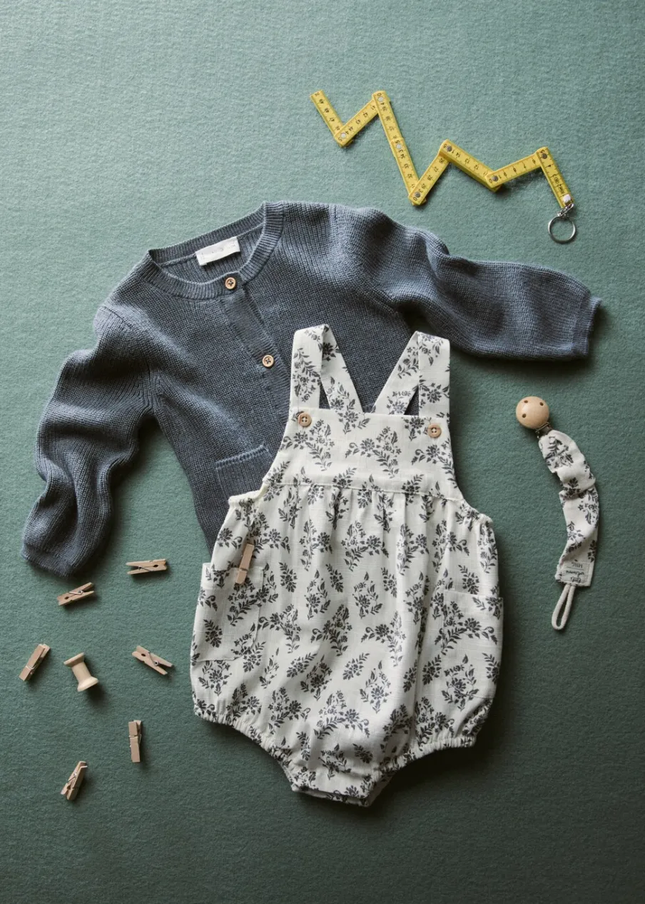 Tkanina z bawełną. Model prosty. Okrągły dekolt. Długi rękaw. Dwie kieszenie boczne. Guziki z imitacji drewna. Zapięcie na guziki. Dostępny zestaw total look.