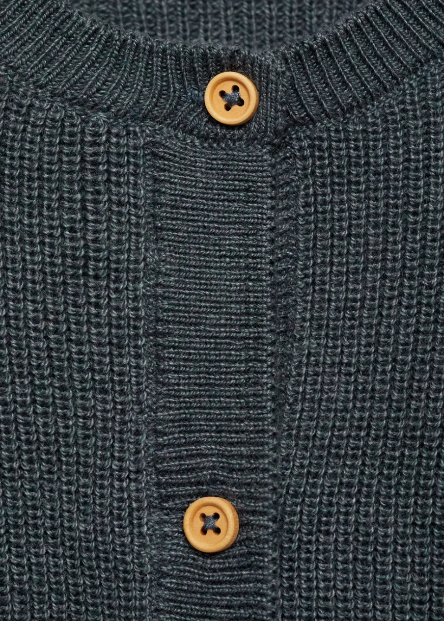 OpisTkanina z bawełną. Model prosty. Okrągły dekolt. Długi rękaw. Dwie kieszenie boczne. Guziki z imitacji drewna….