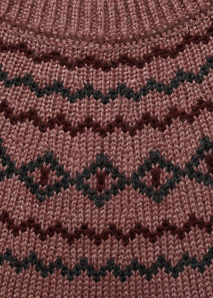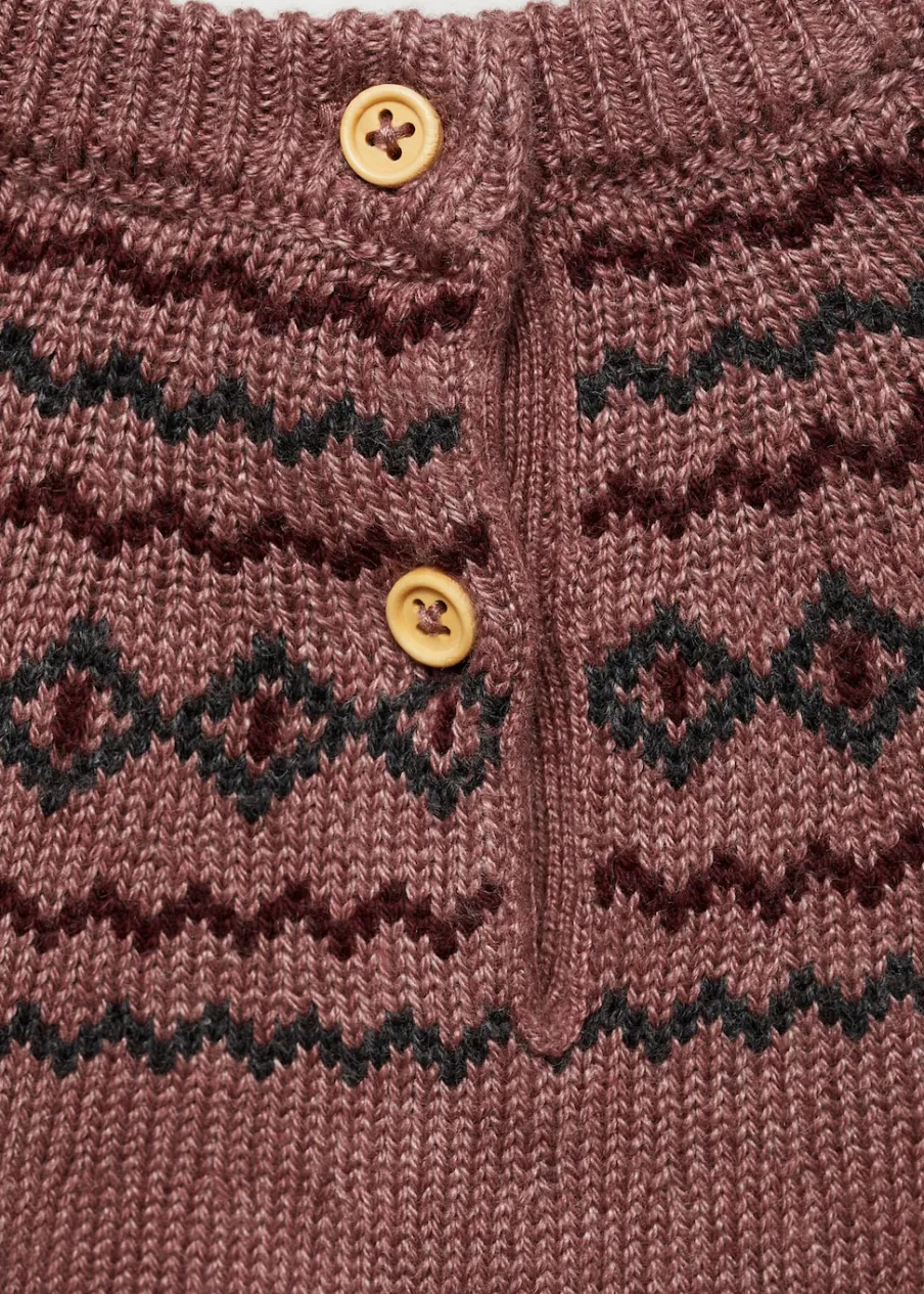 Zapięcie na ramieniu. Żakardowa tkanina. Okrągły dekolt. Model prosty. Długi rękaw.
