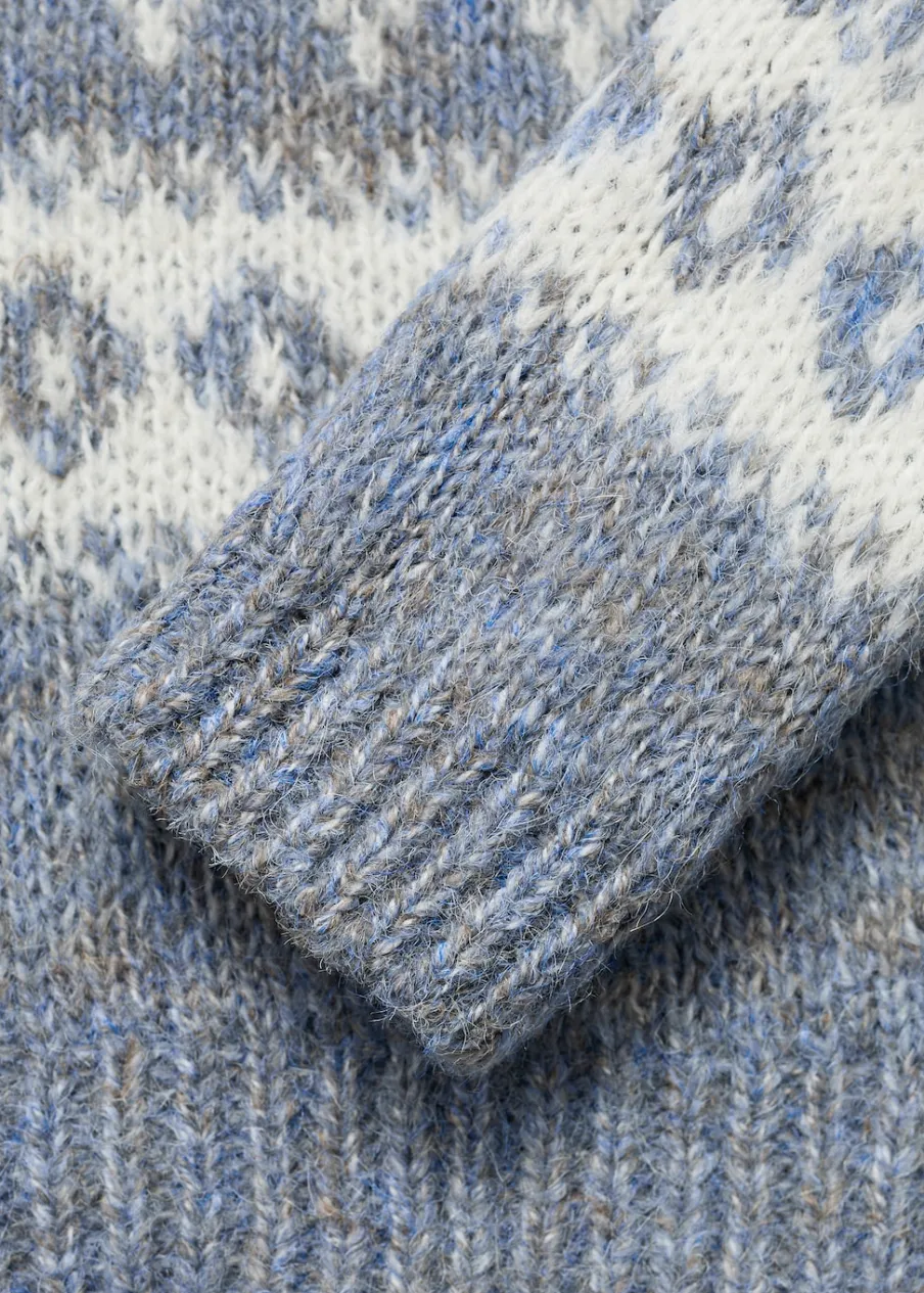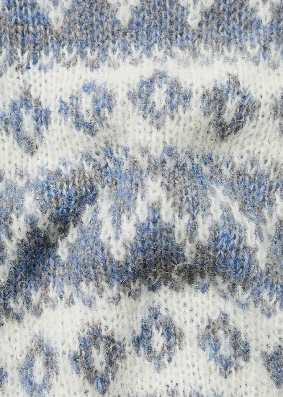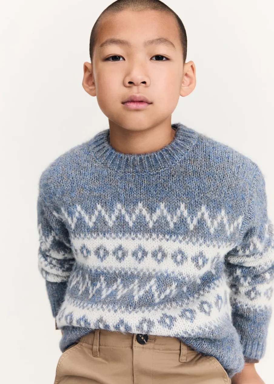 OpisKolekcja Powrót do szkoły. Bez zapięcia. Okrągły dekolt. Model prosty. Długi rękaw. Żakardowy wzór.