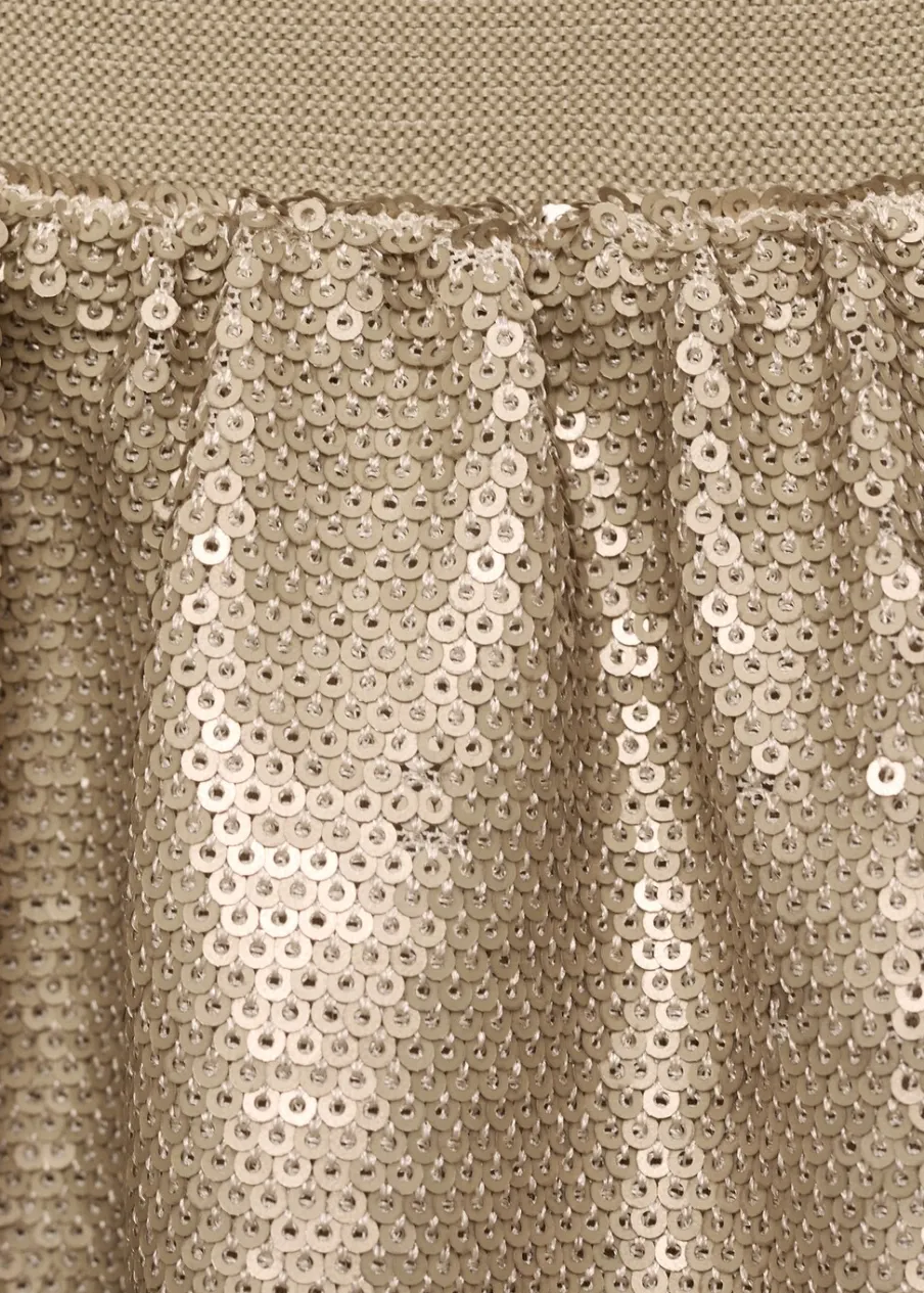 OpisCekinowa ozdoba. Model z falbankami. Krótki krój. Elastyczny pas. Bez zapięcia.