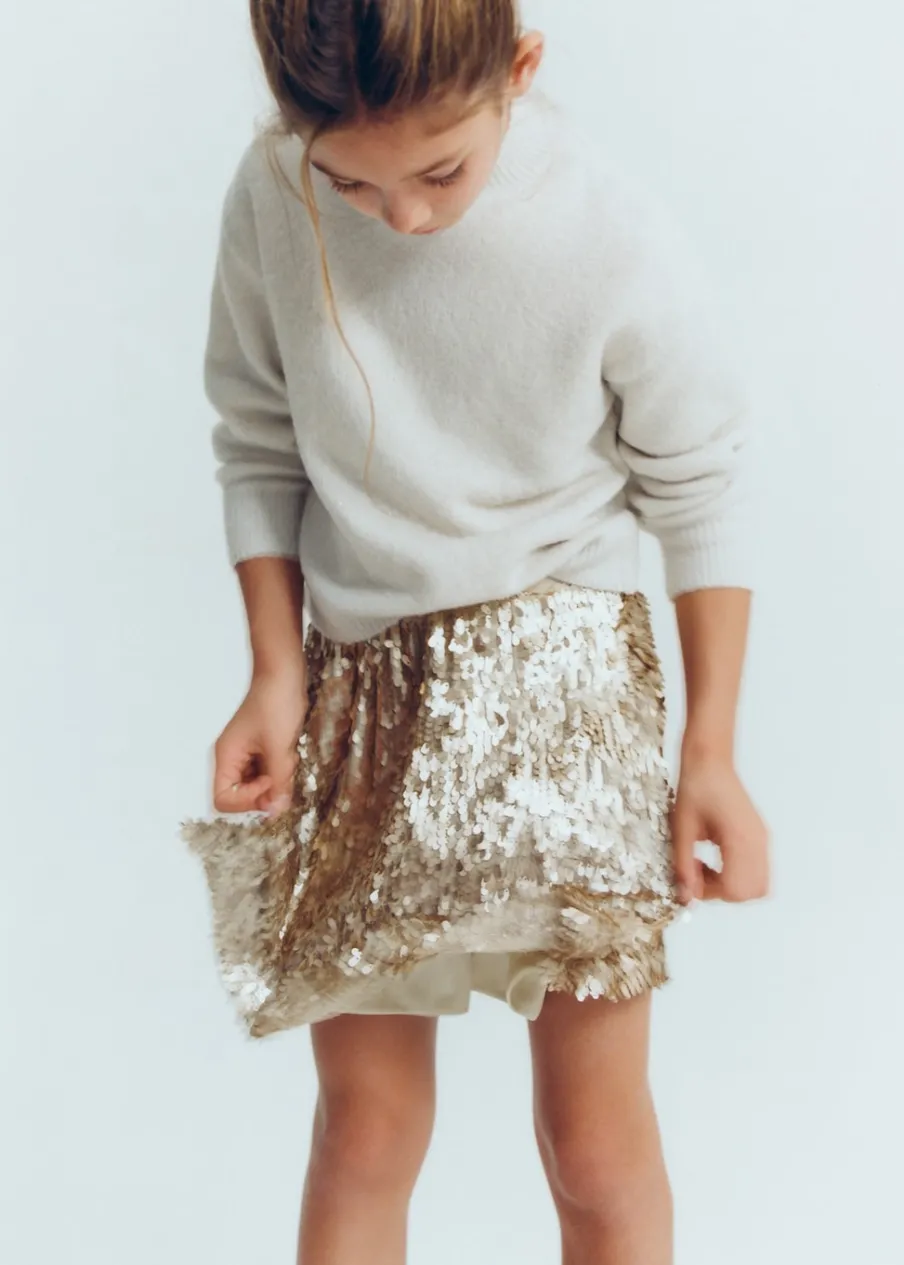 Tkanina z cekinami. Krótki krój. Wewnętrzna podszewka. Kolekcja wieczorowa i imprezowa. Kolekcja Bożonarodzeniowa.