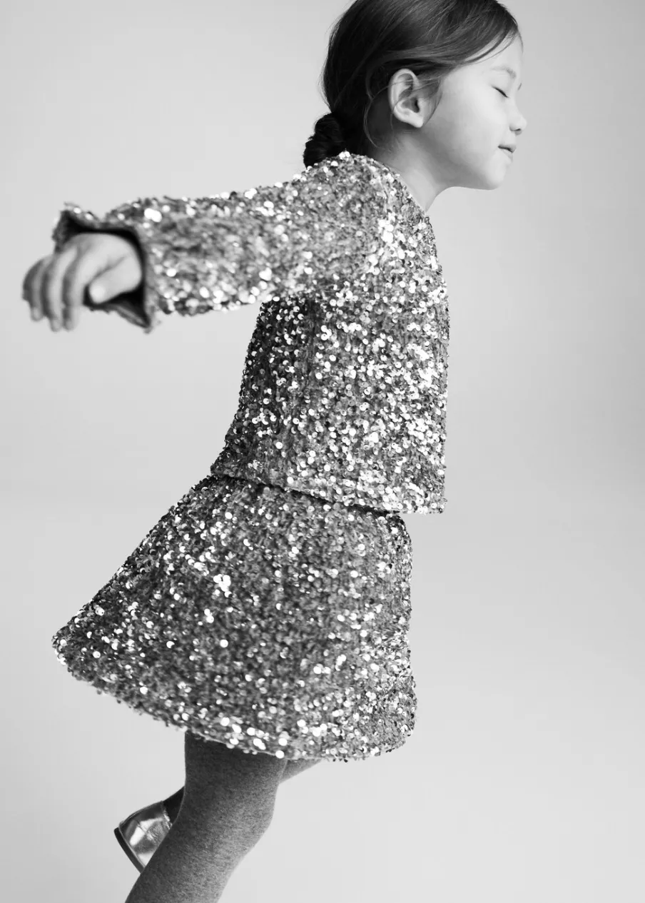 OpisCekinowa ozdoba. Krótki krój. Elastyczna gumka. Wewnętrzna podszewka. Elastyczny pas. Model evasé. Bez zapięcia…