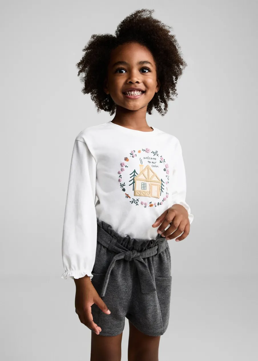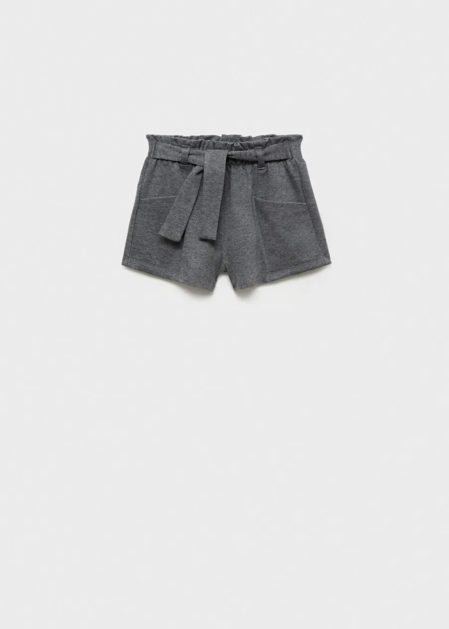 Elastyczna tkanina. Tkanina tweedowa. Model prosty. Dwie kieszenie. Krótki krój. Elastyczna gumka. Paperbag. Zapięcie w formie paska w talii.