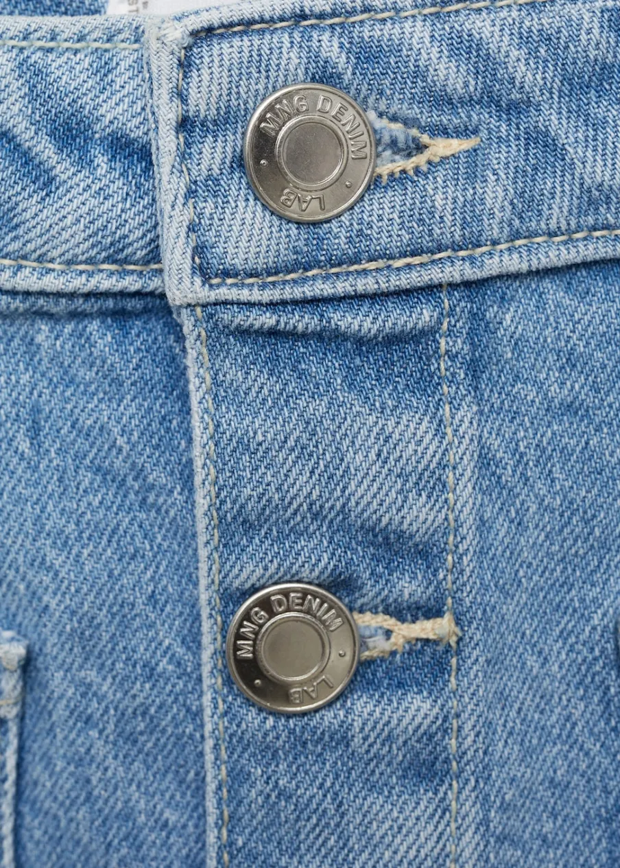 Tkanina bawełniana w dżinsowym stylu. Krótki krój. Dwie kieszenie naszyte z przodu. Zapięcie na guziki z przodu.