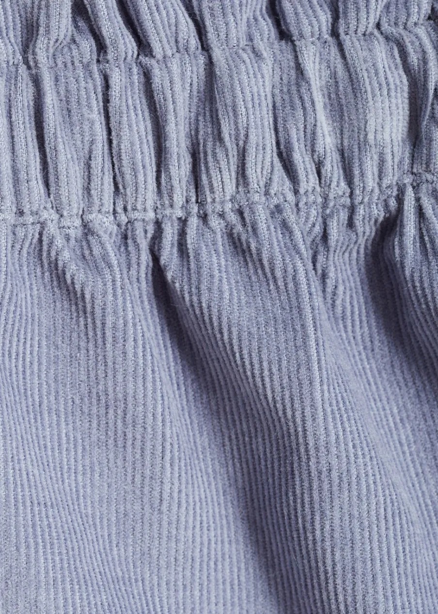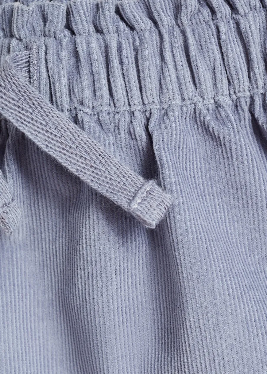 Bawełna 100%. Model prosty. Elastyczny pas z wiązanym zapięciem. Krótki krój. Tkanina sztruksowa.
