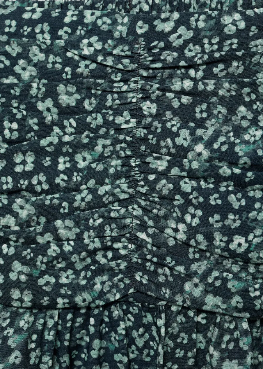 Dostępny zestaw total look. Model prosty. Kwiatowy wzór. Krótki krój. Marszczona tekstura. Elastyczny pas. Falbana u dołu.