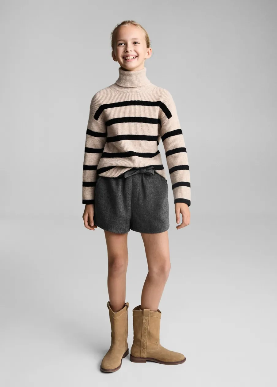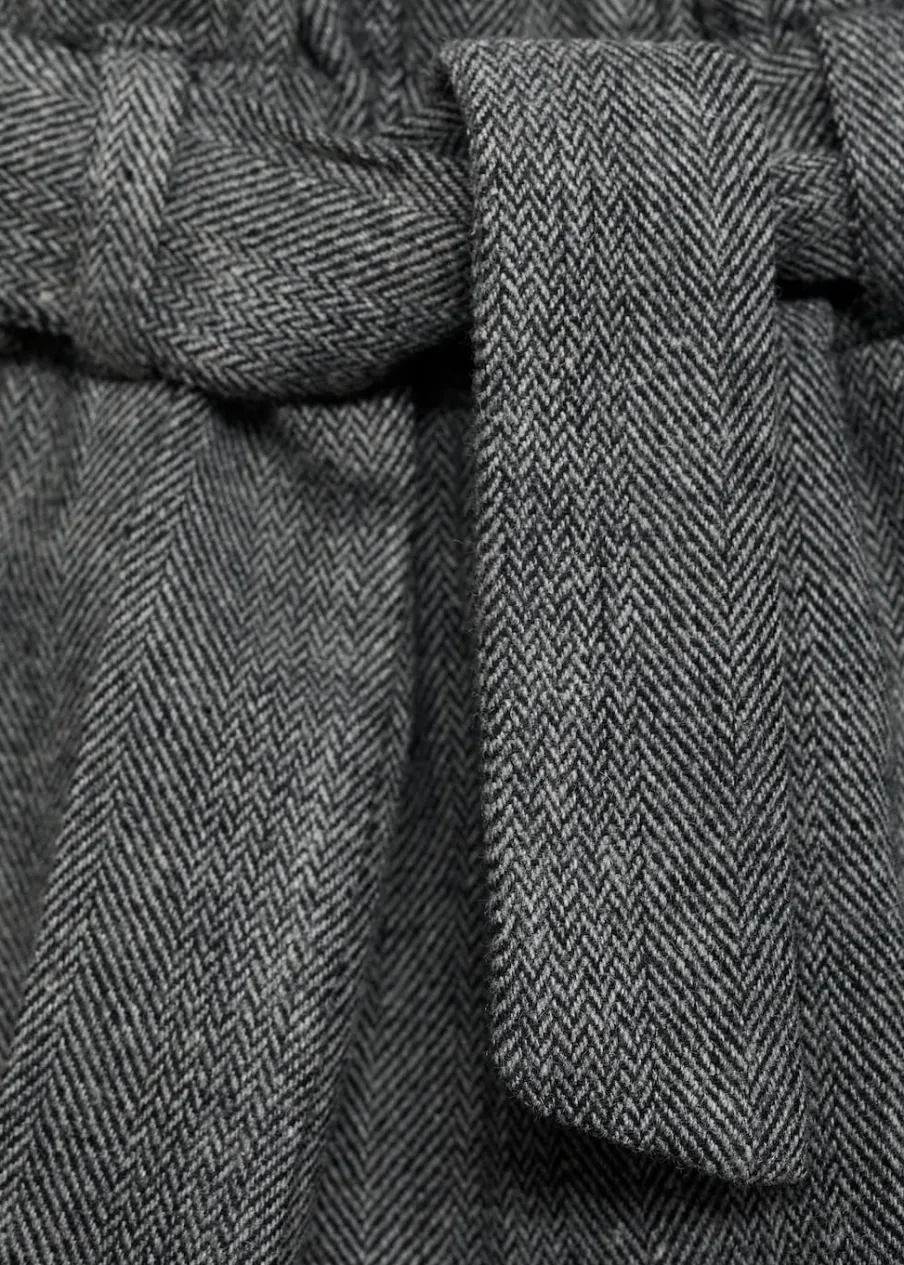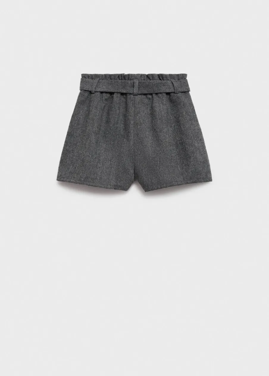 Paperbag. Elastyczna talia typu paperbag. Elastyczny pas z wiązanym zapięciem. Krótki krój. Model prosty.