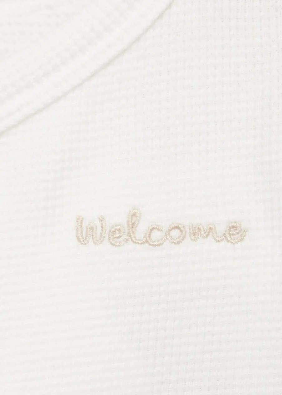 Kolekcja odzieży ciążowej. 100% bomull. Długi rękaw. Haftowany napis. Model zakładany. Z teksturą. Wiązane zapięcie. Zapięcie na zatrzaskowe guziki.