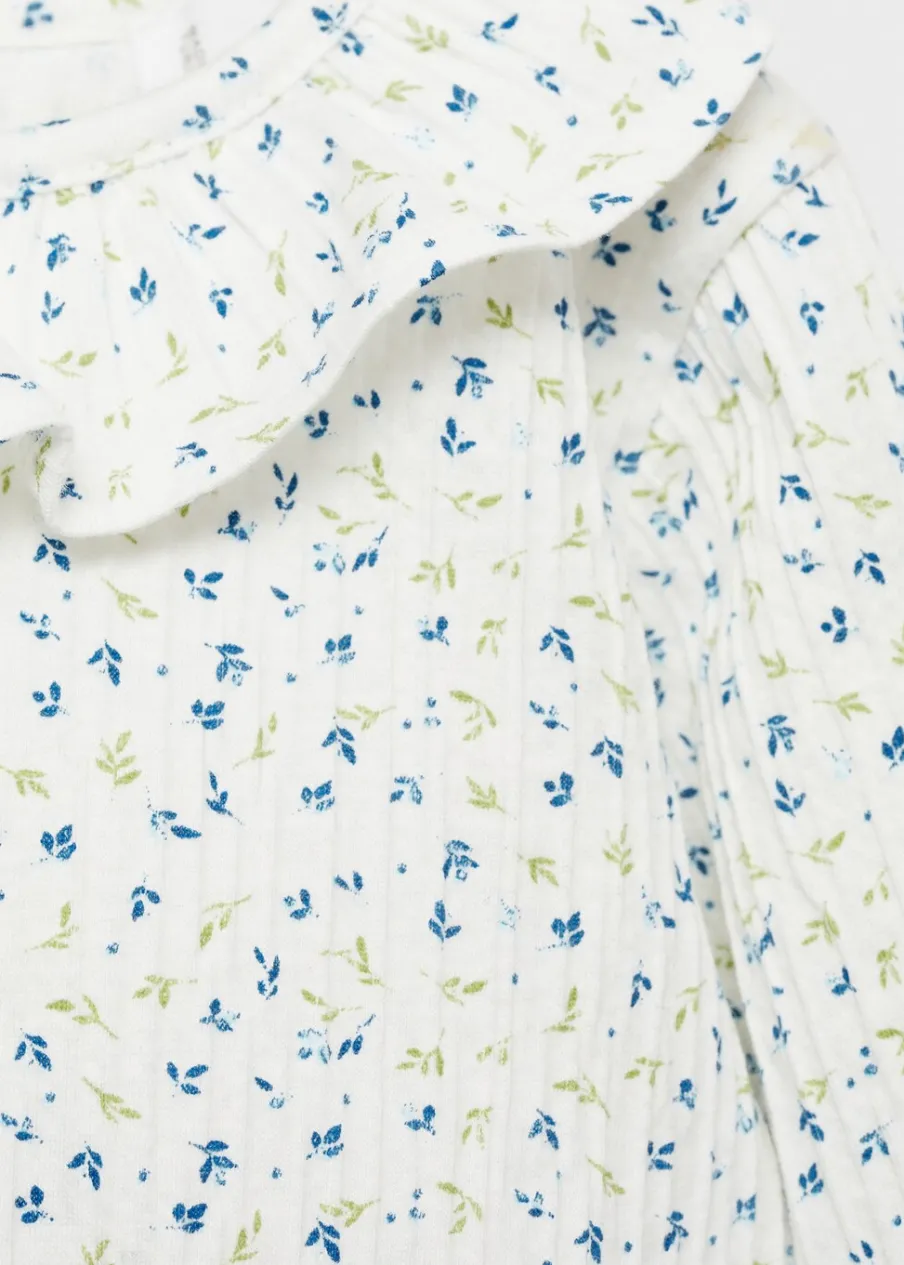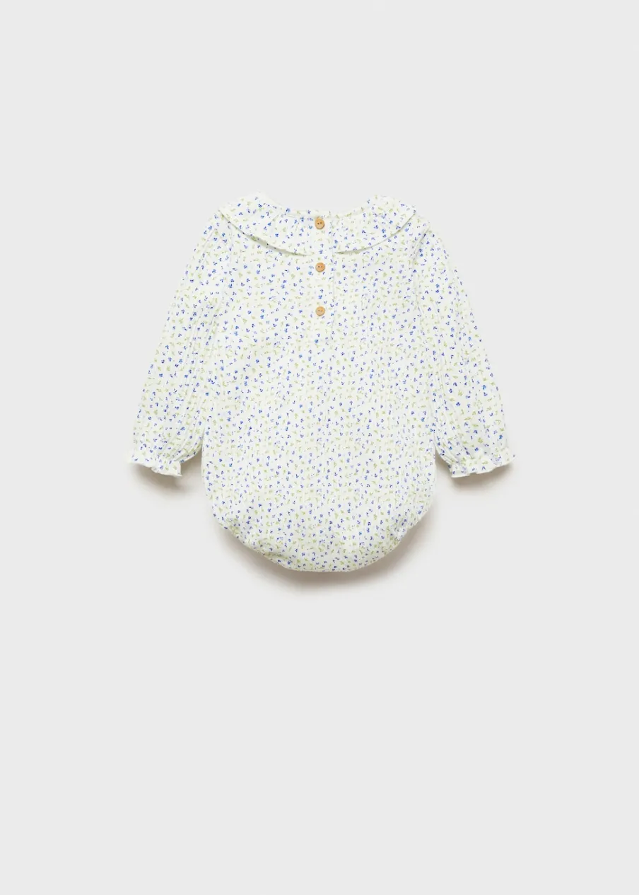 OpisTkanina z bawełną. Model prosty. Kwiatowy wzór. Kołnierzyk bebe. Długi rękaw. Zapięcie z tyłu na guziki. Pod…