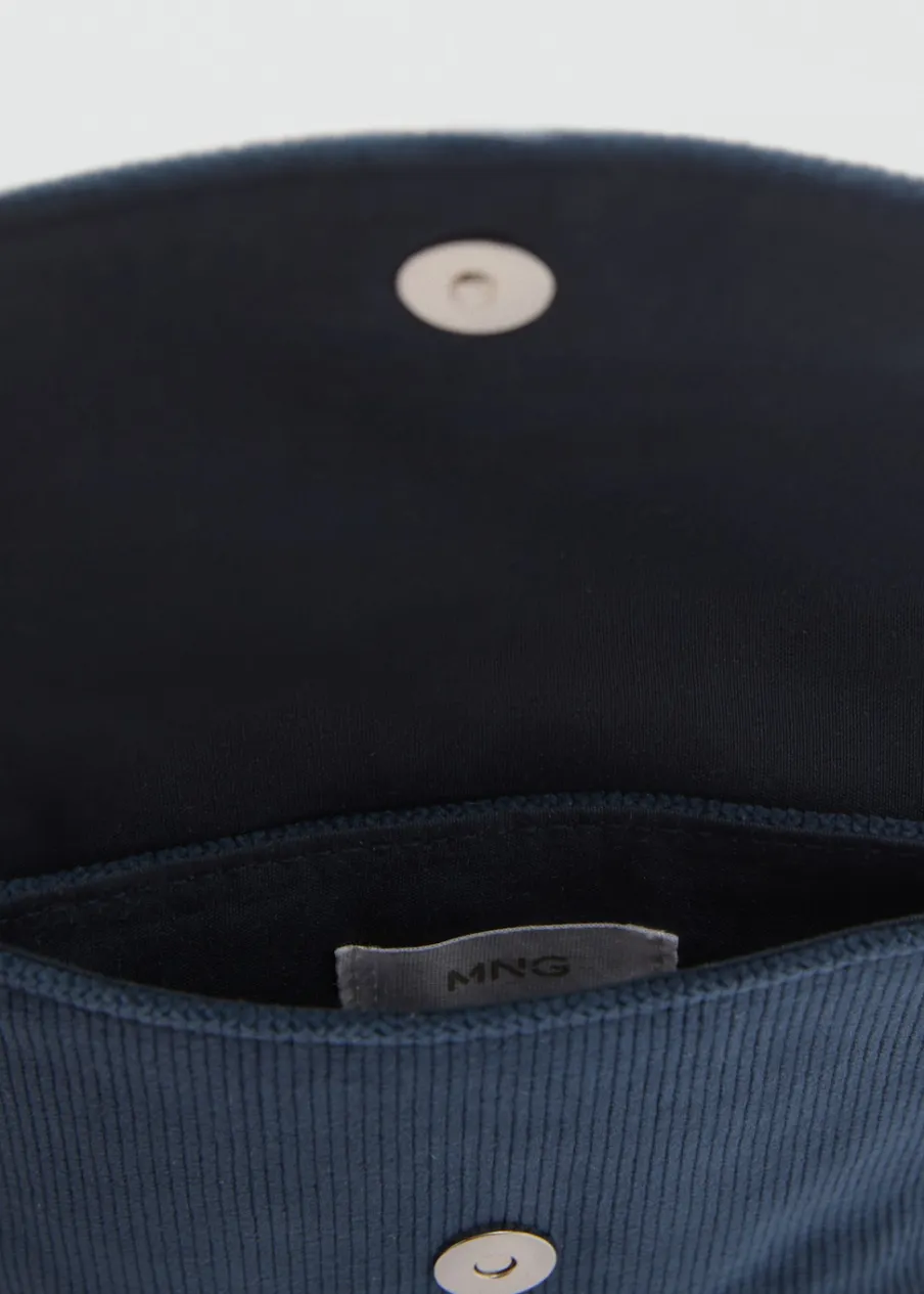 Sztruksowa tkanina. Wstawki ze sztruksu. Długi uchwyt. Wewnętrzna podszewka. Ukryte zapięcie na magnes.