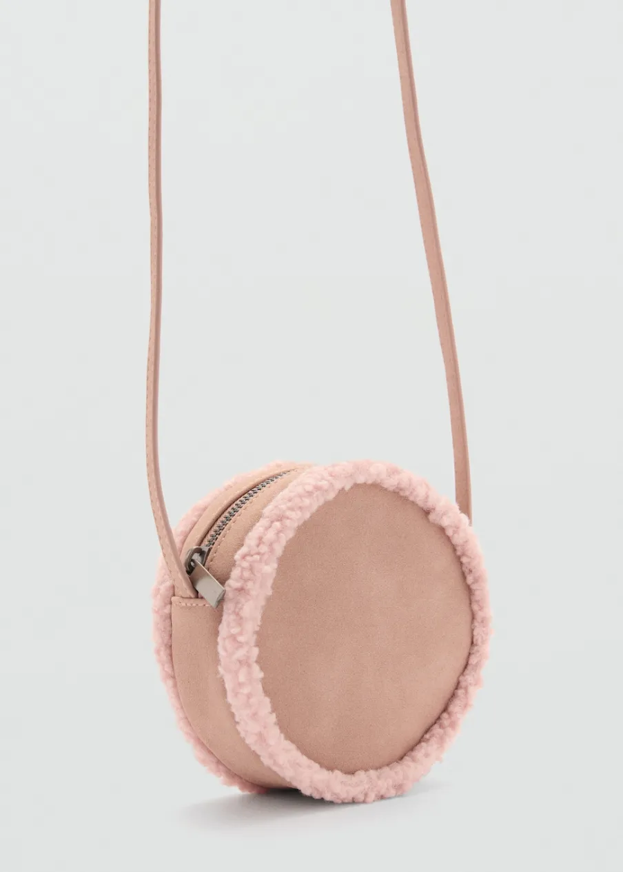 OpisOzdobny kożuch. Okrągły kształt. Długi uchwyt. Zapięcie na suwak.