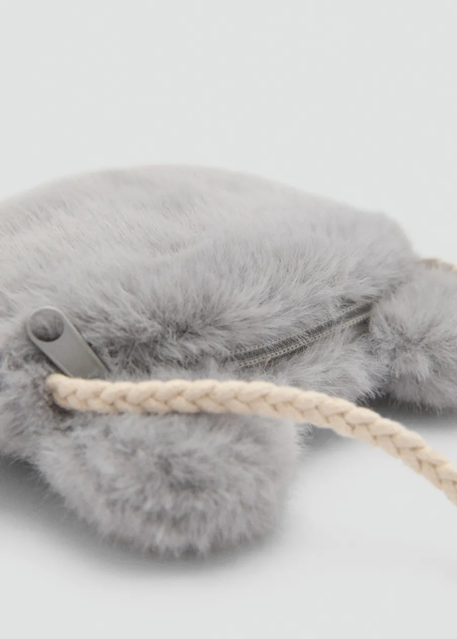 Włochata tekstura. Haftowane detale. Deseń animal. Długi uchwyt. Mała wielkość. Zapięcie na suwak.