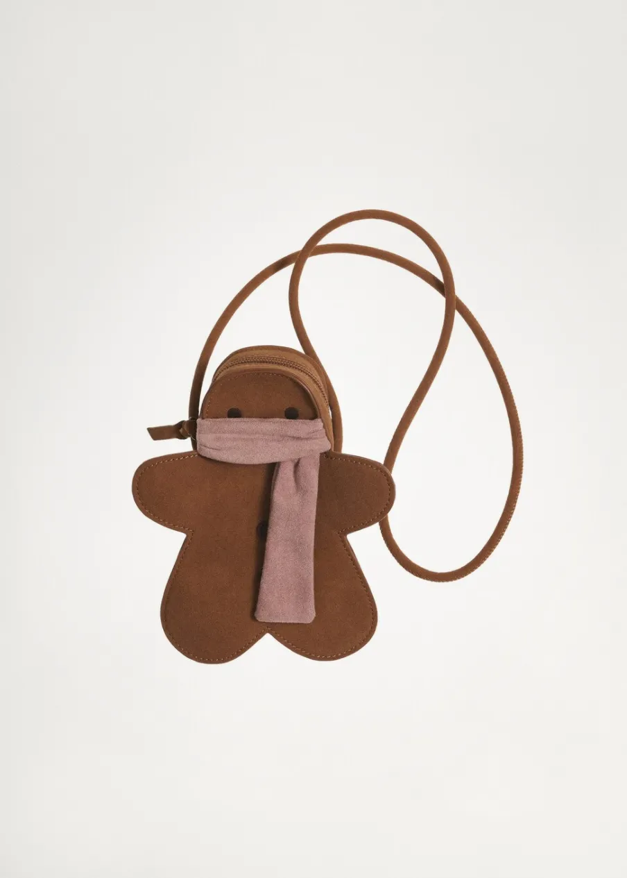 W kształcie imbirowego ludzika. Długi uchwyt. Zapięcie na suwak. Kolekcja Bożonarodzeniowa.