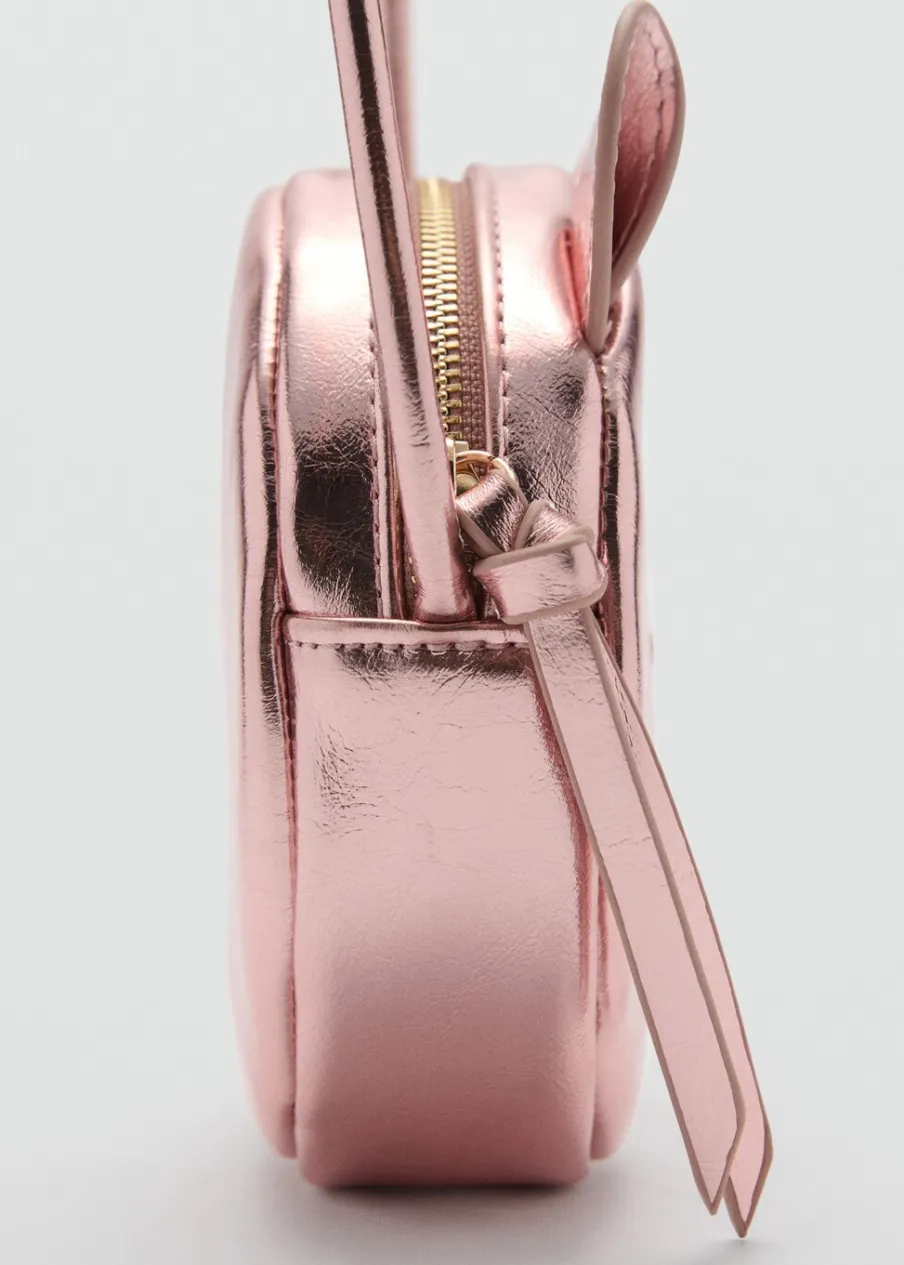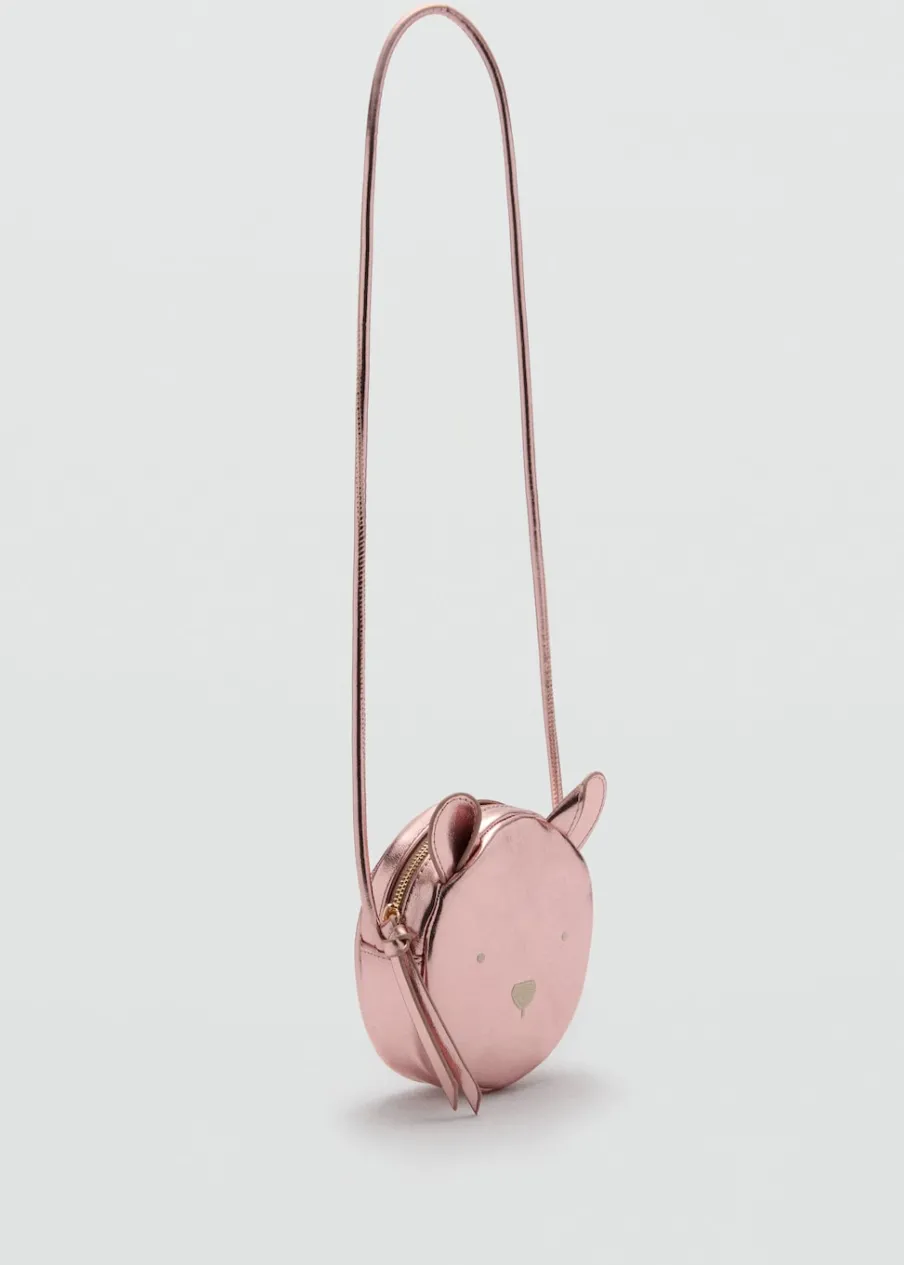 OpisMetaliczny efekt. Ozdobne uszy. Długi uchwyt. W kształcie misia. Zapięcie na suwak.